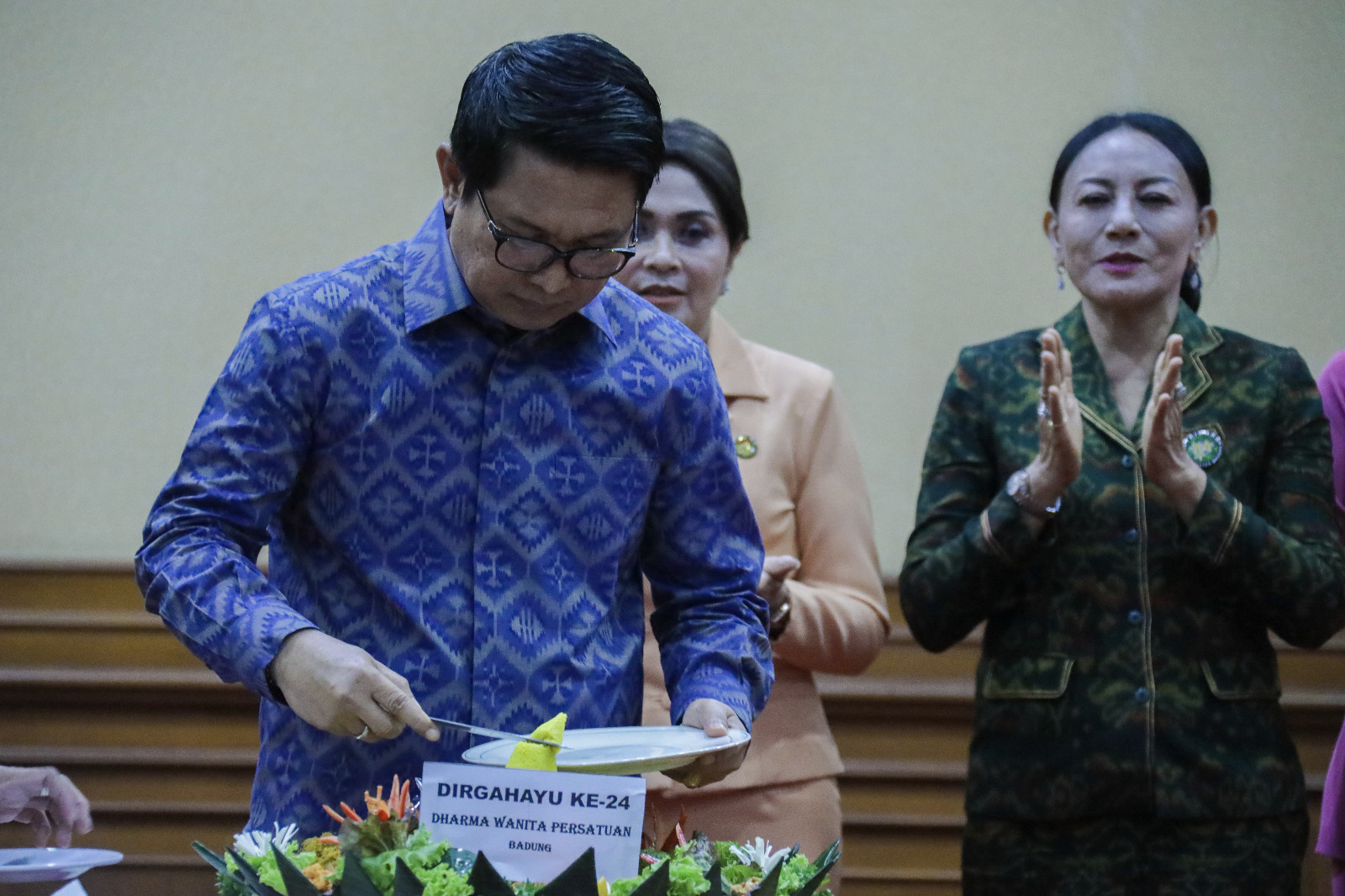 Acara puncak perayaan hari ulang tahun DWP ke-24 dan peringatan hari Ibu ke-95 ditandai dengan pemotongan tumpeng oleh Sekda Adi Arnawa selaku Pembina DWP Badung yang diserahkan kepada Ketua DWP Badung Nyonya Rasniathi Adi Arnawa.