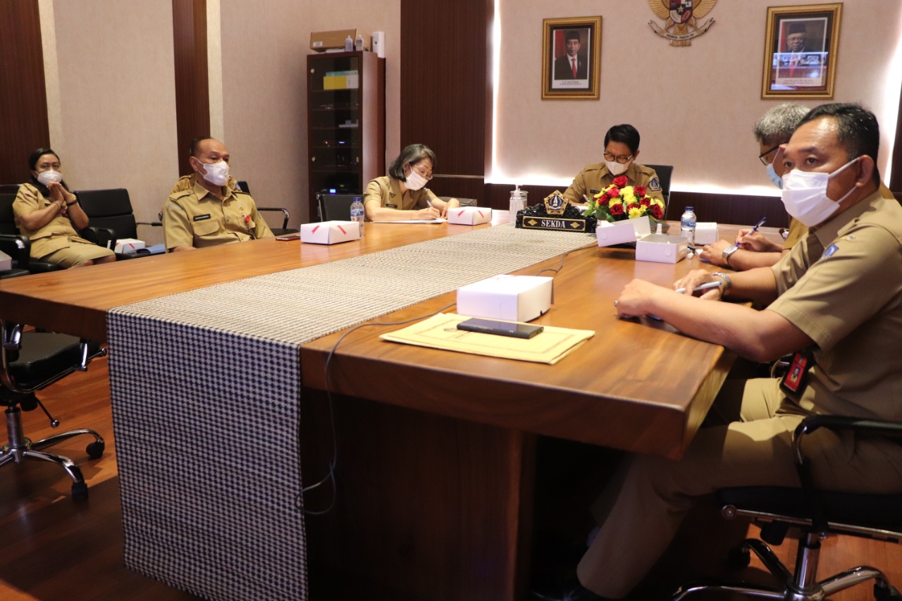 Sekretaris Daerah Kabupaten Badung I Wayan Adi Arnawa mengikuti Video Conference (Vidcon) terkait Kebijakan Penanganan Covid-19 dan Refocusing Transfer ke Daerah dan Dana Desa (TKDD) Tahun Anggaran 2021 dari Ruang Rapat Sekda Puspem Badung, Selasa (9/2) kemarin. Sekda Adi Arnawa didampingi Kadis Kesehatan dr. I Nyoman Gunarta, Kepala Bappeda I Made Wira Dharmajaya, Inspektur Luh Suryaniti, Kabag Pemerintahan I Dewa Gede Sudirawan dan perwakilan perangkat daerah terkait lainnya. Vidcon tersebut dipimpin langsung oleh Plh. Sekjen Kemendagri Hamdani dengan narasumber yaitu Dirjen Perimbangan Keuangan Kementerian Keuangan Astera Primanto Bhakti, Dirjen Bina Administrasi Kewilayahan Kemendagri Safrizal, Dirjen Bina Keuangan Daerah Kemendagri Mochamad Ardian.