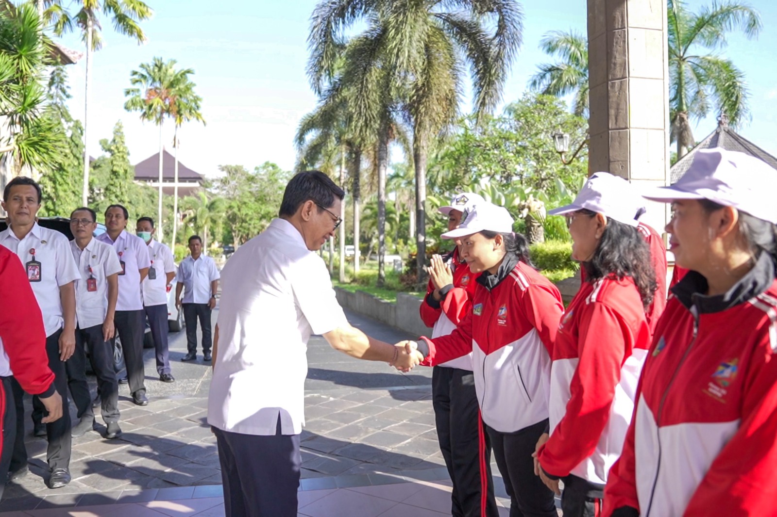 Sekretaris Daerah Kabupaten Badung I Wayan Adi Arnawa selaku Dewan Pengurus KORPRI Kabupaten Badung melepas anggota Korpri Badung sebagai Kontingen Pornas KORPRI XVI Provinsi Bali yang akan mengikuti Pekan Olahraga Nasional (Pornas) KORPRI XVI di Provinsi Jawa Tengah, bertempat di Lobby Kantor Bupati, Puspem Badung, Rabu (12/7). Turut hadir Sekretaris KORPRI Badung I Wayan Wijana, perwakilan perangkat daerah terkait di lingkup Pemkab Badung.