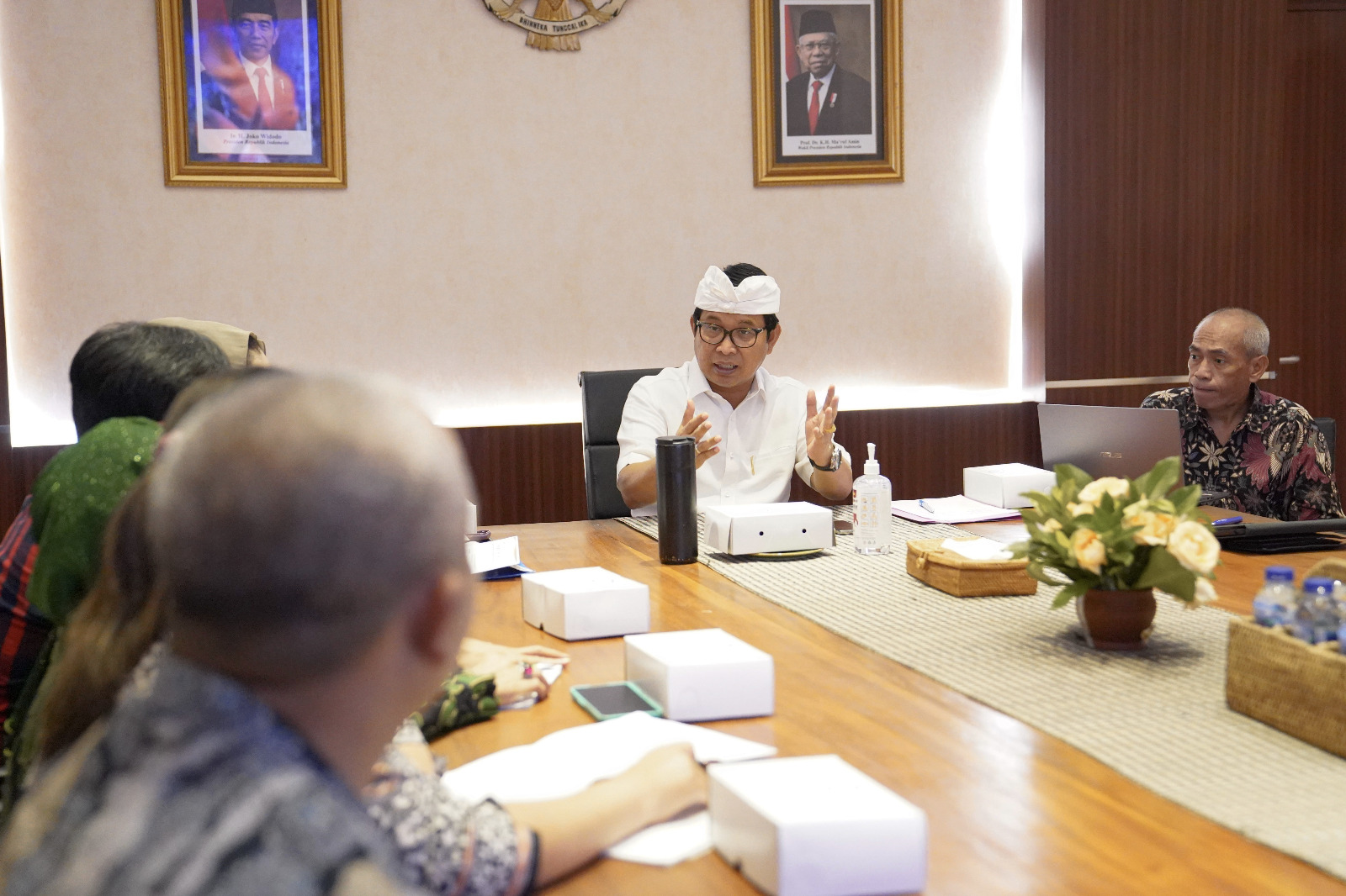 Sekda Adi Arnawa saat memimpin acara rapat ITTSU Tahun 2023 di Ruang Rapat Sekretaris Daerah Kabupaten Badung di Puspem Badung, Rabu, (3/5).