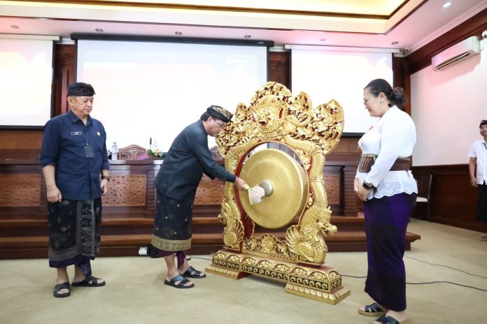 Ket foto : Sekretaris Daerah Kota Denpasar, IB Alit Wiradana saat membuka secara resmi Musyawarah Perencanaan Pembangunan (Musrenbang) Kecamatan Denpasar Selatan Tahun Anggaran 2026 yang ditandai dengan pemukulan Gong di Waroeng Madu Sedana, Kelurahan Sanur Kauh, Kamis (23/1).