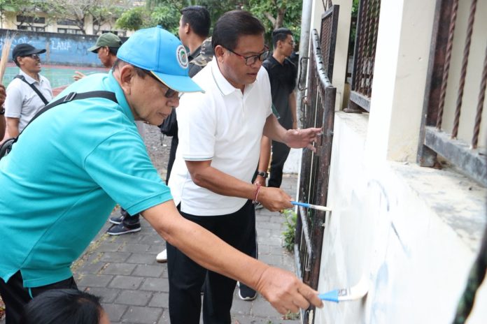 Teks Foto : Sekretaris Daerah Kota Denpasar, IB. Alit Wiradana saat menghadiri gerakan serentak pembersihan lingkungan dengan lingkup kegiatan yang dilaksanakan meliputi pembersihan vandalisme pada fasilitas umum yang berada di wilayah Desa Tagal Harum, Selasa (9/9/2025).