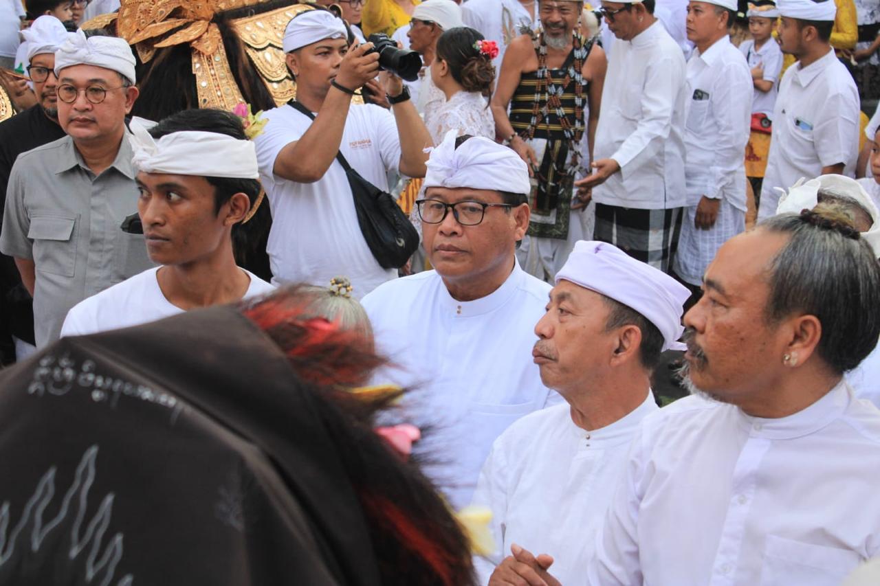 Sekretaris Daerah Kota Denpasar, Ida Bagus Alit Wiradana menghadiri Karya Ngeratep, Melaspas lan Mapasupati lan Nyuciang Ida Betara Sesuhunan di Pura Kembar, Desa Adat Sanur, Kecamatan Denpasar Selatan Sabtu (3/5).
