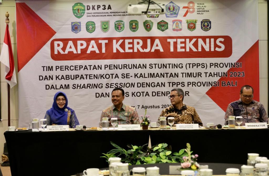 Sekretaris Daerah Provinsi Bali Dewa Made Indra memaparkan sejumlah langkah dan strategi dalam penurunan jumlah stunting di Bali. Hal ini disampaikannya saat didaulat sebagai narasumber dalam Rapat Kerja Teknis Tim Percepatan Penurunan Stunting Provinsi dan Kabupaten/ Kota se-Kalimantan Timur Tahun 2023 Dalam Sharing Session dengan TPPS Provinsi Bali, di Hotel Harper Kuta, Badung, Senin (7/8).