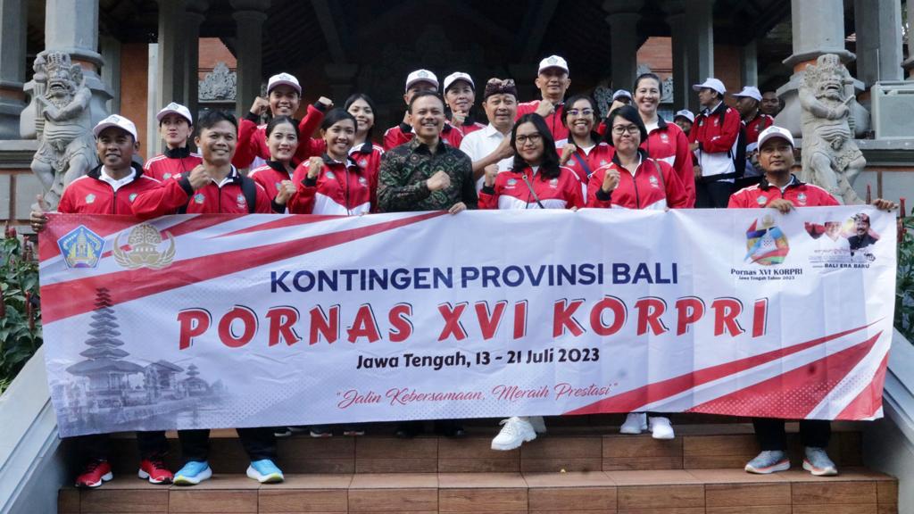 Sekretaris Daerah Provinsi Bali Dewa Made Indra melepas 161 atlet dan ofisial Korps Pegawai Republik Indonesia (KORPRI) Bali yang akan berlaga di ajang Pekan Olahraga Nasional (PORNAS) KORPRI XVI Tahun 2023 di Semarang, Jawa Tengah. Sekda Dewa Indra berharap para atlet mampu mempertahankan semangat dan soliditas selama bertanding disana. “Ini adalah pertandingan antar ASN se-Indonesia. Jadi saya harapkan para atlet menjaga semangat, sportivitas dan soliditas disana. Saling mendukung dan menjaga nama baik Bali adalah tujuan yang harus ditetapkan sebagai tekad bersama,” ungkap Dewa Indra sesaat melepas Kontingen PORNAS XVI KORPRI, di Gedung Wiswa Sabha Utama, Rabu (12/7).
