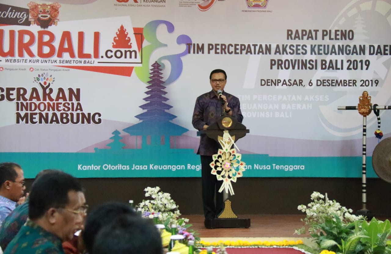 Sekretaris Daerah Provinsi Bali Dewa Made Indra saat membuka secara resmi  Rapat Pleno Tim Percepatan Akses Keuangan Daerah (TPKAD) Tahun 2019 di Ruang Rapat Kantor Otoritas Jasa Keuangan (OJK) Regional 8 Bali Nusra, Jumat (6/12).