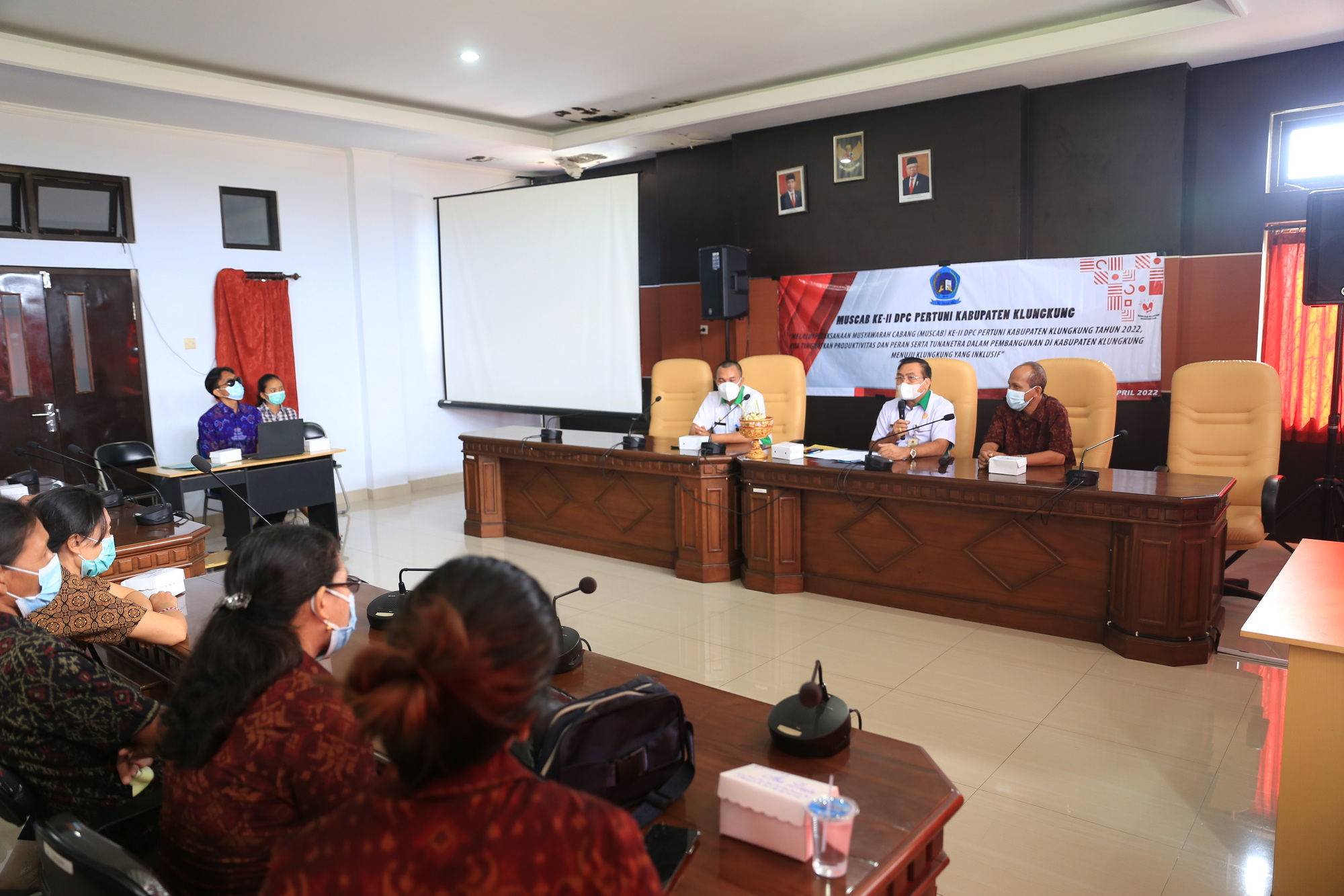Sekretaris Daerah Kabupaten Kabupaten, I Gede Putu Winastra mewakili Bupati Klungkung membuka kegiatan Musyawarah Cabang (Muscab) II Persatuan Tuna Netra Indonesia (PERTUNI) Kabupaten Klungkung di ruang rapat Gedung Lantai II Kantor Dinas Ketahanan Pangan dan Perikanan Kabupaten Klungkung, Desa Takmung, Kecamatan Banjarangkan, Rabu (6/4).