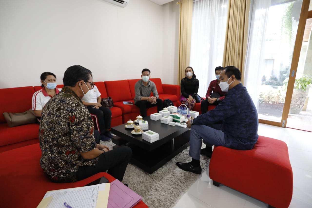 Wabup Suiasa didampingi Asisten Administrasi Umum Cokorda Raka Darmawan saat menerima Ketua Panitia Jegeg Bagus Badung 2020 di Rumah Jabatan Wakil Bupati, Jumat (5/2).
