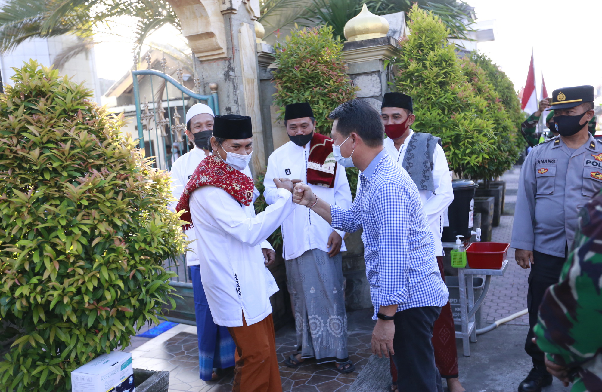 Bupati Klungkung, I Nyoman Suwirta mamantau pelaksanaan Sholat Ied di Sekolah Hassanudin, Masjid Al Hikmah Kampung Islam Lebah dan Mesjid Nurul Huda Kampung Gelgel, Kabupaten Klungkung, Kamis (13/5). Turut hadir mendampingi Bupati Waka Polres Klungkung, Perwakilan Dandim 1610/Klungkung, Kasat Pol PP I Putu Suarta serta instansi terkait lainnya.
