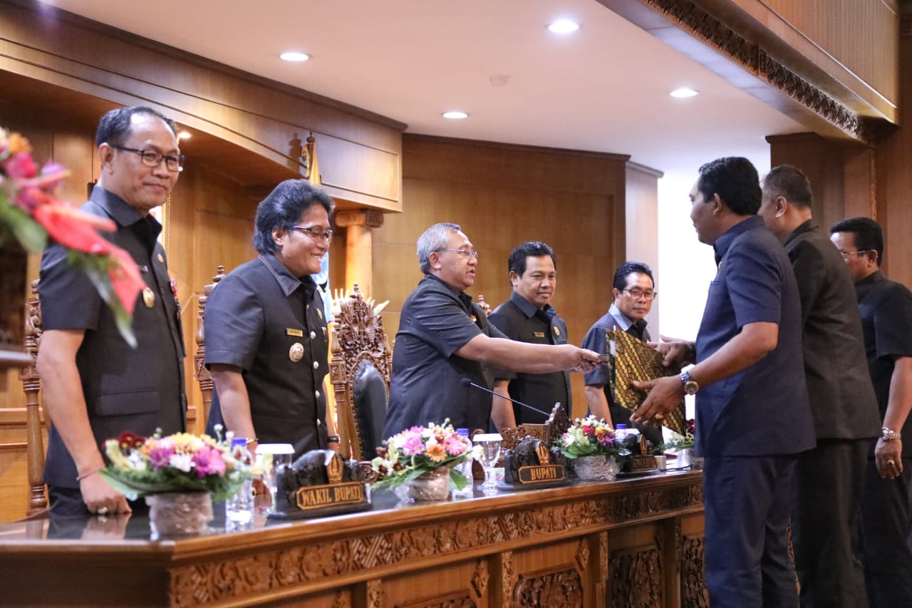 Rapat yang dipimpin Ketua DPRD Kabupaten Badung Putu Parwata dihadiri lengkap Para Wakil Ketua DPRD dan Anggota DPRD Badung, Sekda Adi Arnawa serta pimpinan OPD dilingkungan Pemkab Badung yang mengagendakan penyampaian Jawaban Pemerintah Terhadap Pemandangan Umum fraksi-fraksi DPRD Kabupaten Badung atas Rancangan Peraturan Daerah (Ranperda) Kabupaten Badung tentang APBD Kabupaten Badung Tahun Anggaran 2020, Ranperda tentang Perubahan Kedua Atas Peraturan Daerah Nomor 13 Tahun 2016 tentang Rencana Pembangunan Jangka Menengah Daerah Semesta Berencana Kabupaten Badung tahun 2016-2021, Ranperda tentang Perubahan Atas Peraturan Daerah Nomor 14 tahun 2011 tentang Pajak Parkir, Ranperda tentang Perubahan Kedua atas Peraturan Daerah Nomor 17 Tahun 2011 tentang Pajak Hiburan, Ranperda tentang Perubahan Kedua atas Peraturan Daerah Nomor 25 Tahun 2011 tentang Retribusi Tempat Rekreasi dan Olahraga, Ranperda tentang Penetapan Badan Kesatuan Bangsa dan Politik Kabupaten Badung. Sumber : Humas Pemkab Badung
