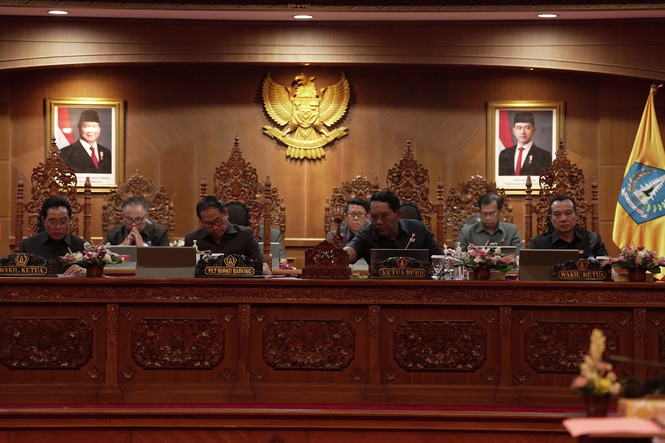 Sidang paripurna dipimpin oleh Ketua DPRD Badung Gusti Anom Gumanti bersama Wakil Ketua I AA Ngurah Ketut Agus Nadi Putra, Wakil Ketua II Made Wijaya dan Wakil Ketua IIIÂ Made Sunarta. Turut hadir Pimpinan Forkopimda Badung, Pj. Sekda Badung beserta seluruh Kepala OPD di Lingkungan Pemerintah Kabupaten Badung, Pimpinan Instansi Vertikal, para Direksi Perusahaan Daerah serta para Tenaga Ahli DPRD dan anggota DPRD Kabupaten Badung.