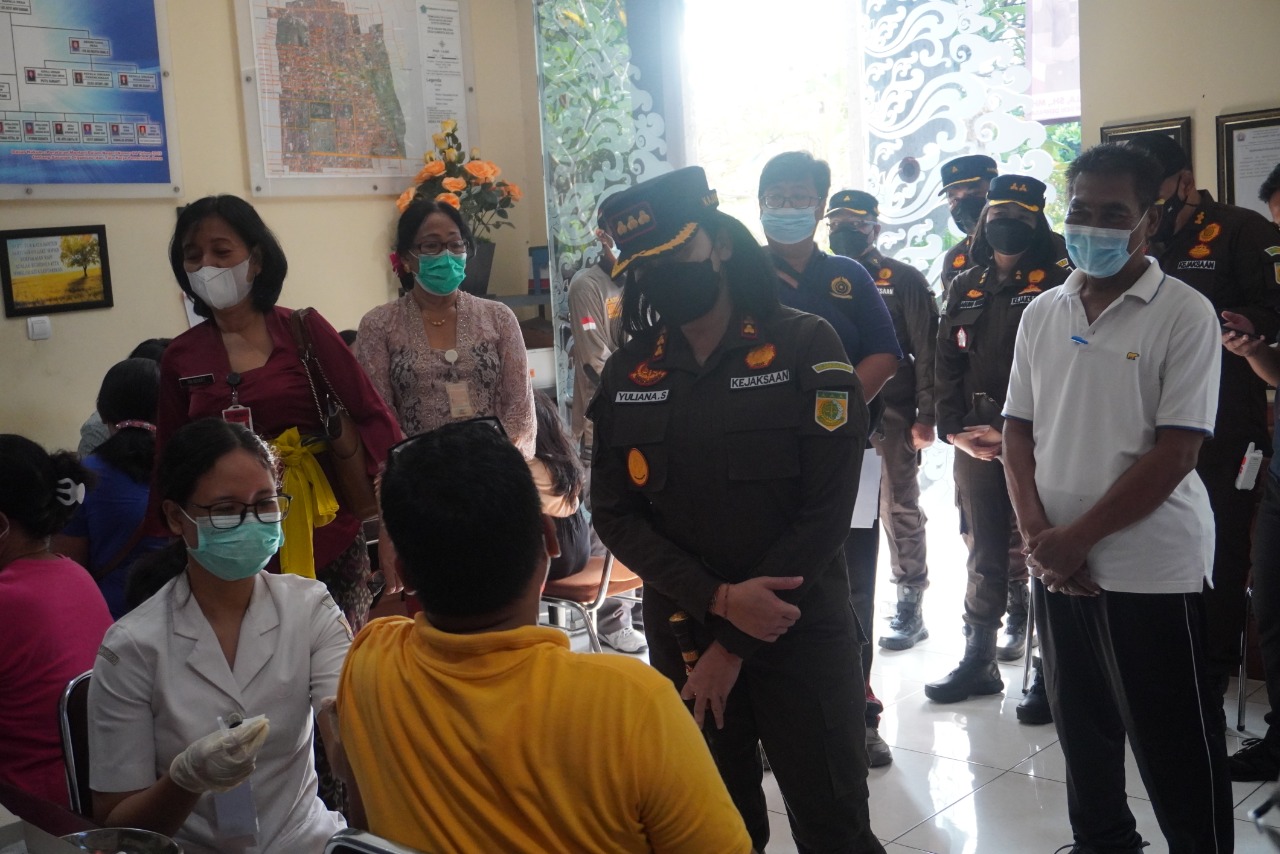 Sebagai upaya mendukung program Pemkot Denpasar dalam percepatan penanganan covid-19 guna menekan jumlah penyebaran virus covid 19  khususnya di Kota Dempasar, berbagai instansi baik itu negeri maupun swasta turut melaksanakan vaksinasi covid-19. Kali ini kolaborasi  pelaksanaan bersama Kejaksaan Negeri Denpasar yang bertajuk Gebyar Vaksin Wayan Adyaksa di Kantor Kepala Desa Sumerta Klod, pada Kamis (12/5).