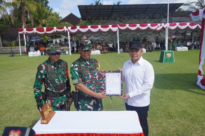 Program TNI Manunggal Membangun Desa (TMMD) Ke-127 Tahun 2026 di wilayah Kodim 1617/Jembrana resmi ditutup dengan capaian gemilang. Upacara penutupan yang mengusung tema “Satukan Langkah Membangun Negeri dari Desa” dipimpin langsung oleh Danrem 163/Wira Satya, Brigjen TNI Ida I Dewa Agung Hadisaputra, S.H., bertempat di Lapangan Umum Desa Yehembang, Kecamatan Mendoyo, Rabu (11/3).