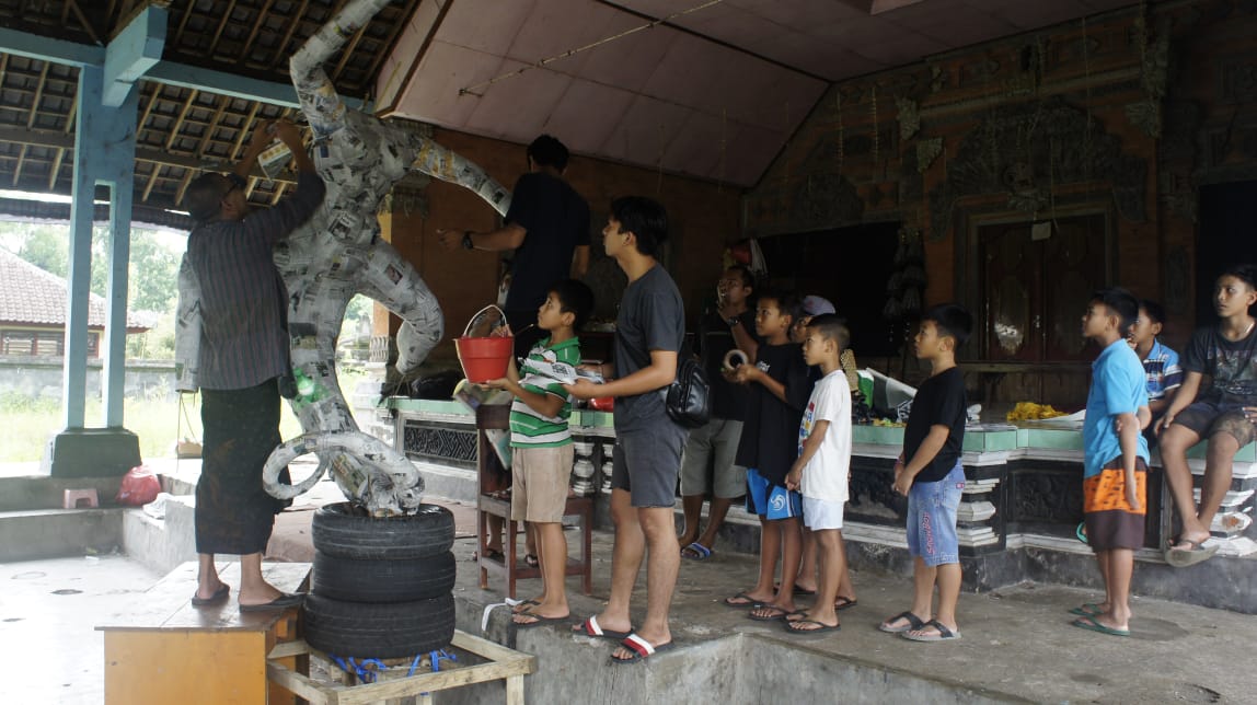 STT Karya Duta, Banjar Buyan, Desa Menanga, Kecamatan Rendang, Kabupaten Karangasem bekerja sama dengan seniman recikle barang bekas I Gusti Lanang Mantra bikin ogoh – ogoh berbahan barang – barang bekas.