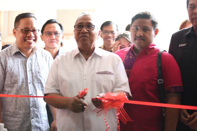 Ketua DPRD Badung Putu Parwata didampingi Ketua Ketua Komisi IV Made Suwardana melaunching Galery UMKM yang ditandai dengan pemotongan pita.