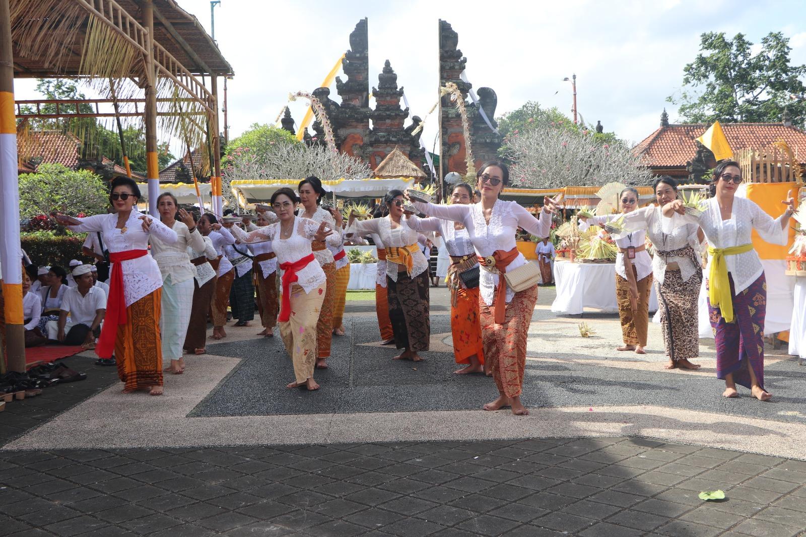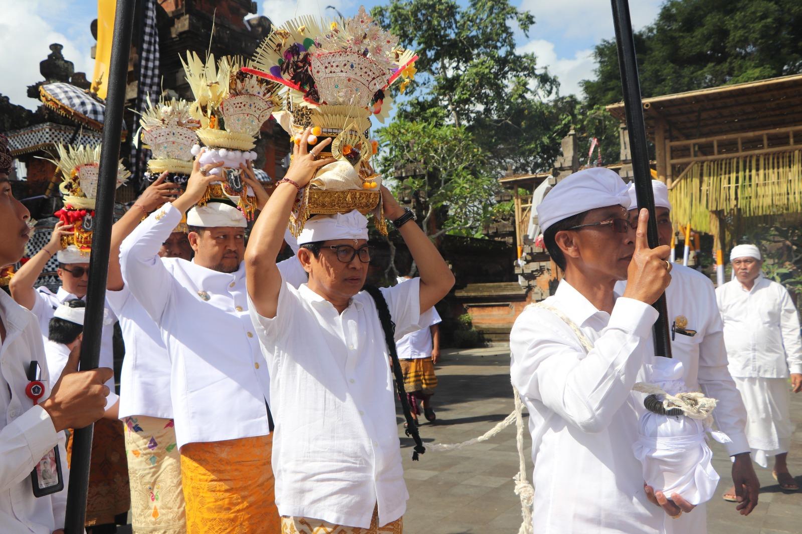 Bupati Wayan Adi Arnawa didampingi Wabup. Bagus Alit Sucipta saat Upacara Pedanan di Pura Lingga Bhuwana, Puspem Badung, Rabu (2/7).