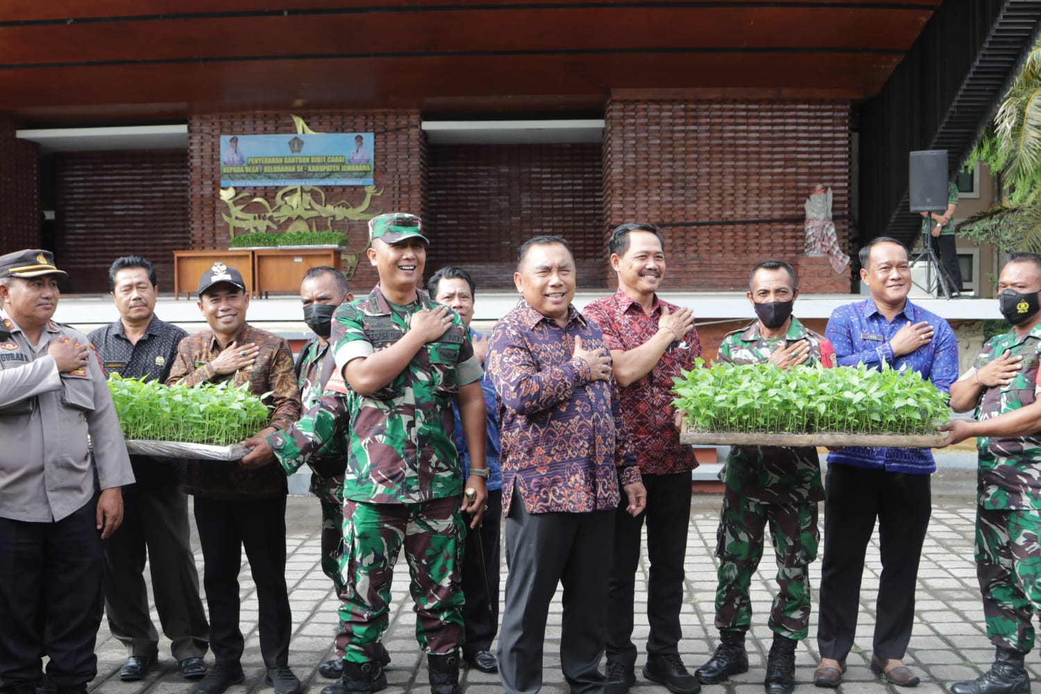 Bupati Jembrana I Nengah Tamba membagikan 2000 bibit tanaman cabai per desa/kelurahan se-kabupaten Jembrana sebagai salah satu upaya menstabilkan harga komoditas pangan dan mengendalikan inflasi imbas kenaikan harga BBM bertempat di Gedung Kesenian Ir. Soekarno, Selasa (4/10/2022).