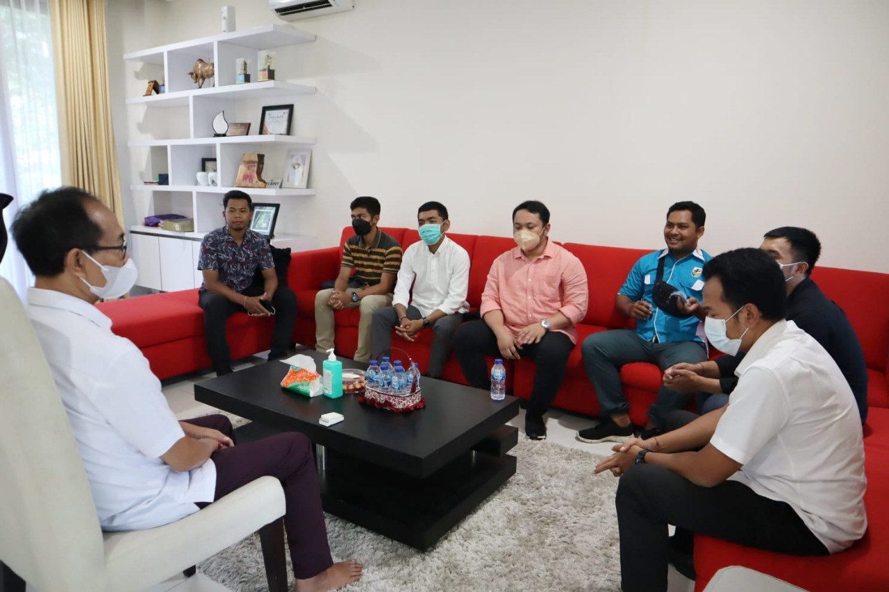 Wabup Ketut Suiasa menerima audiensi sekaligus silaturahmi pengurus DPD KNPI Badung di Ruang Rapat Rumah Jabatan Wakil Bupati, Puspem Badung, Rabu (23/3).