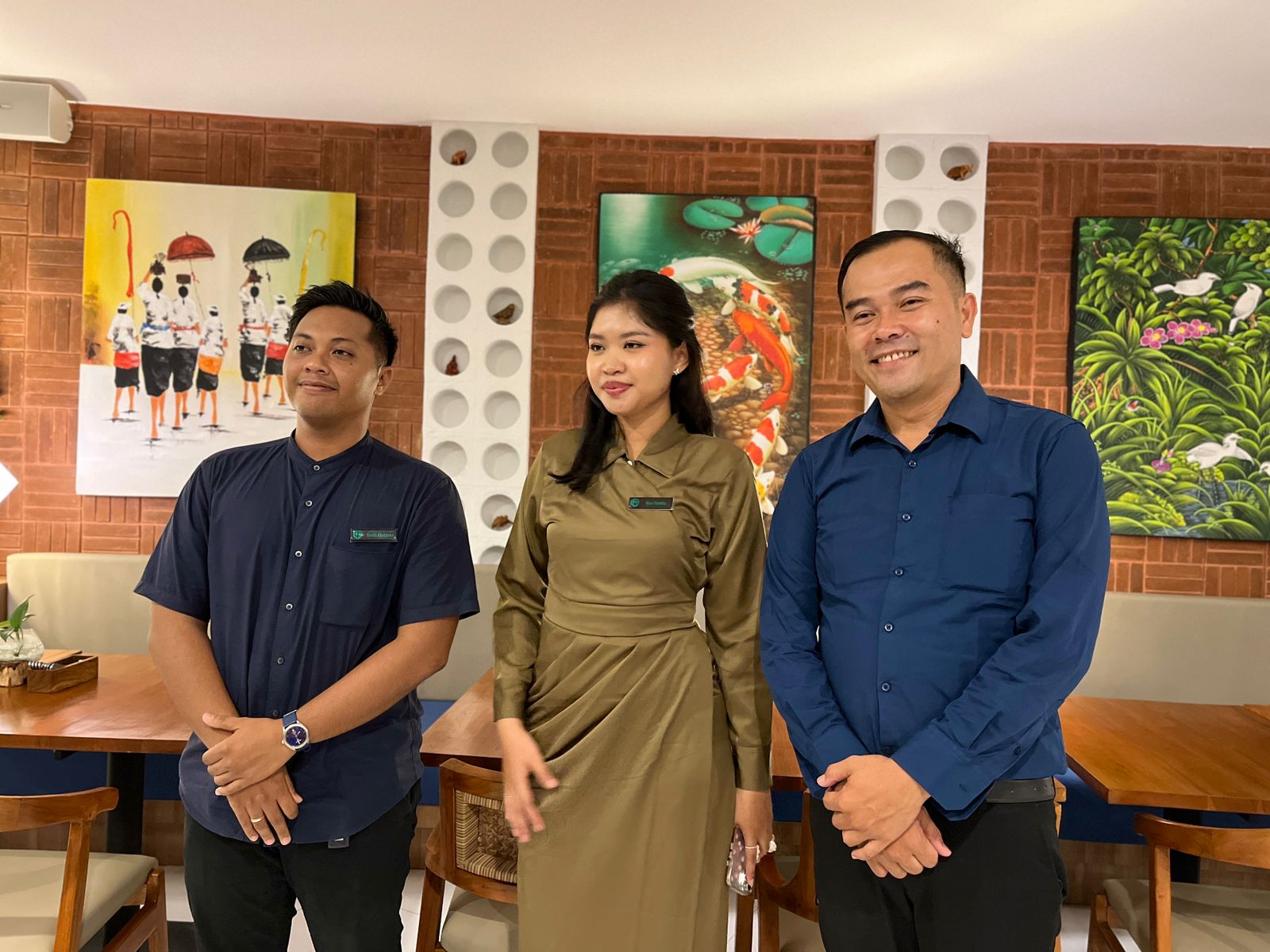 (kiri-kanan) Yuda Hutama selaku Assistan GM, dan Esa Yunita selaku Sales Executive, dan Tedi Hermawan selaku General Manager Teroemboe Kitchen & Dining.