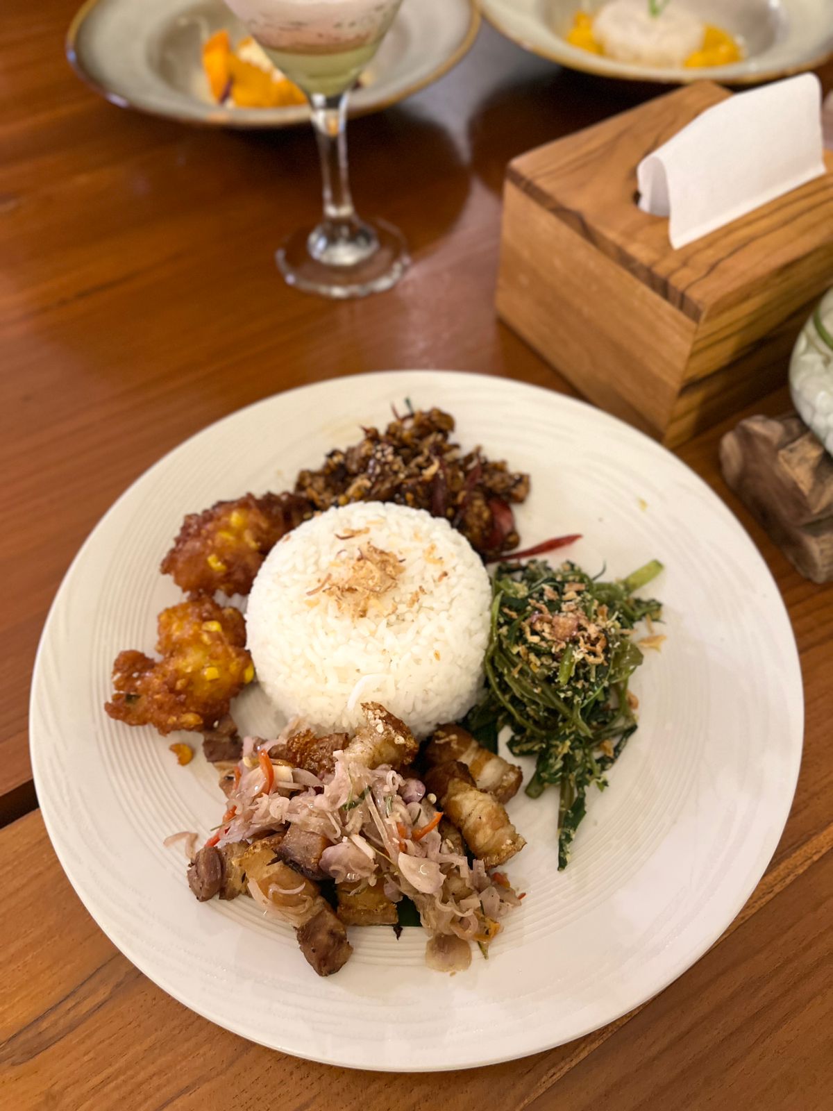 Resto yang berdiri di tanah seluas 24 are ini berkonsep green living, dimana sebagian besar menu makanan yang dihidangkan menonjolkan masakan Indonesia yang dikemas modern, agar para tamu lokal dan mancanegara bisa menikmati makanan Nusantara dengan pengalaman berbeda.
