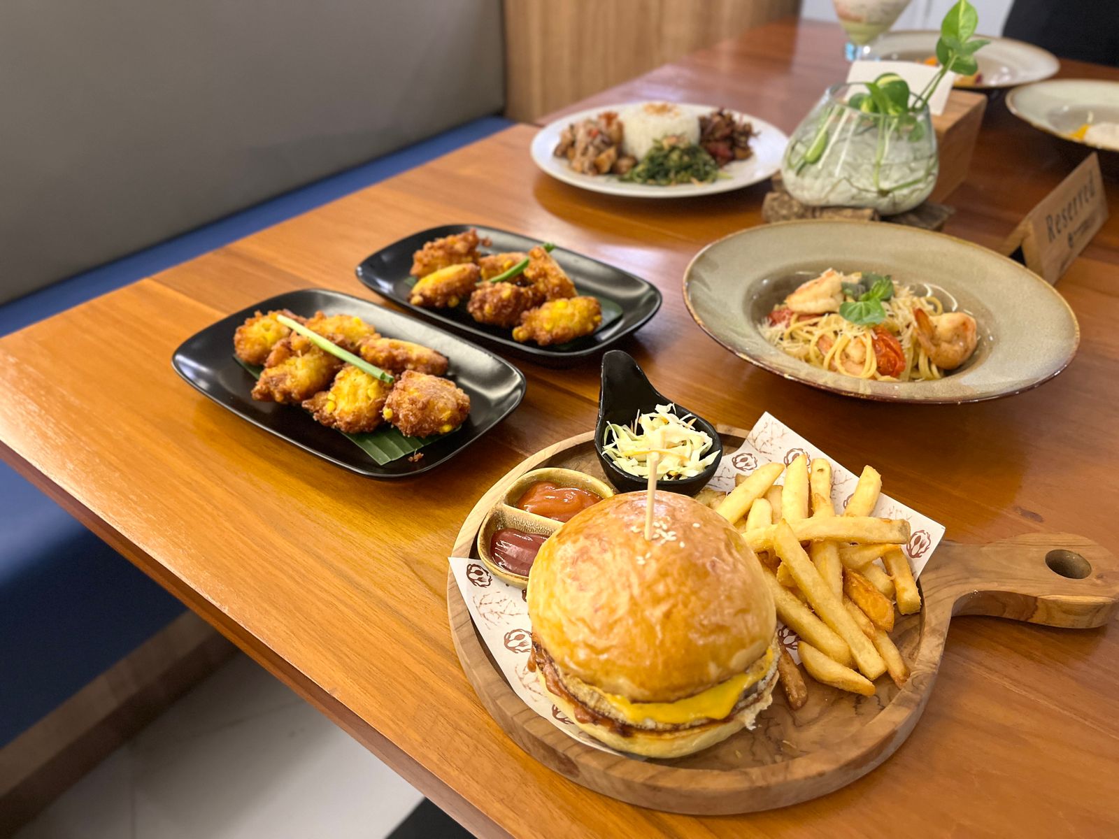 “Makanya kita bikin menu cuisine ketika tamu luar yang ingin makan disini tetap bisa menikmati masakan Indonesia tetapi dengan bahan-bahan yang familiar di lidah mereka, seperti contoh pasta kita ada pork belly sambal matah, kita bikin biar orang-orang dari luar merasakan makanan mereka tapi dengan cita rasa Nusantara itu,” ujar Tedi didampingi Yuda Hutama selaku Assistant GM dan Esa Yunita selaku Sales Executive.