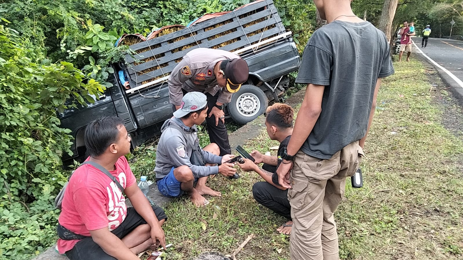 Dari kejadian itu, kendaraan L300 P 8208 GH yang berada di belakang truk Isuzu berusaha menghindar dengan membanting setir ke kanan, namun justru membuat kendaraan keluar dari badan jalan dan masuk ke selokan sedalam dua meter di sisi kanan jalan menuju Denpasar.
