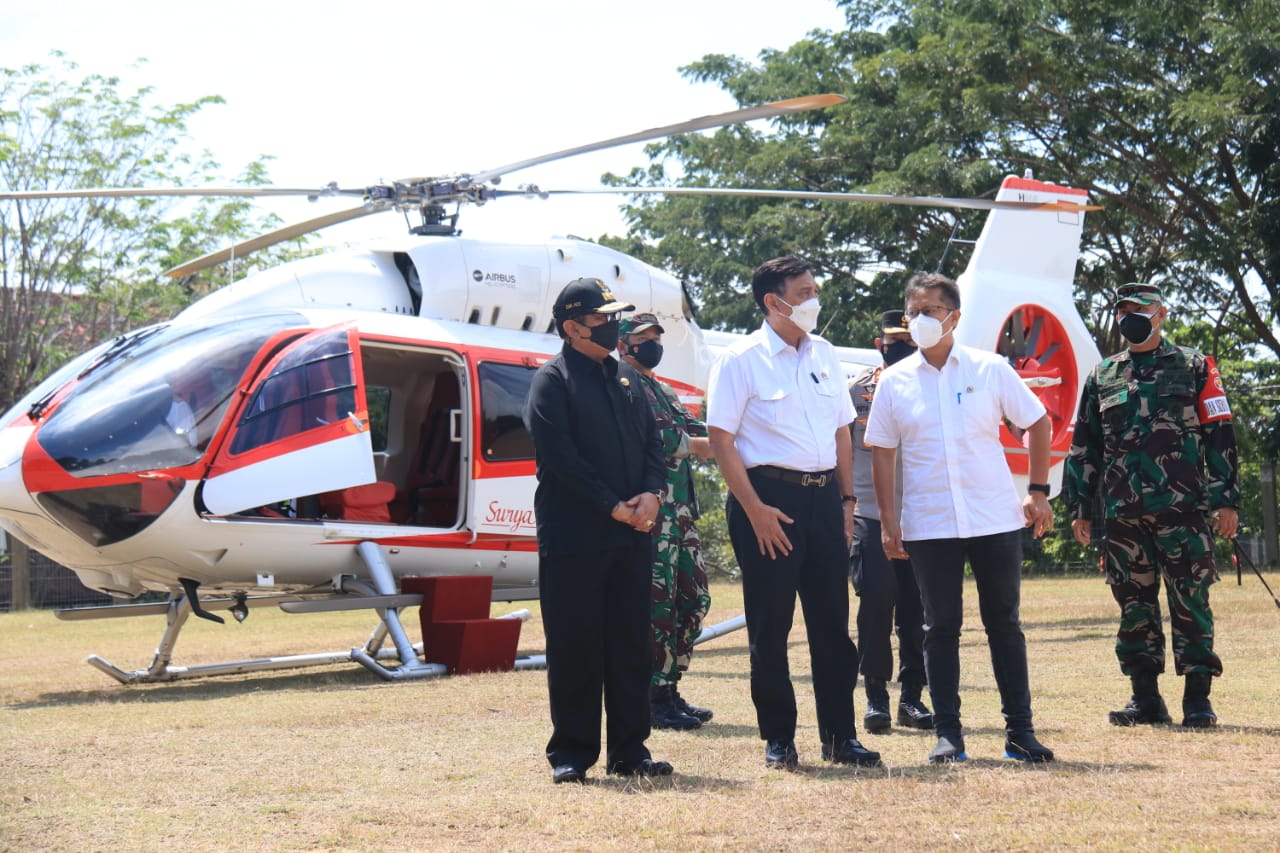 Tiga Menteri yaitu Menteri Koordinator Bidang Kemaritiman dan Investasi (Menko Marves) Luhut Binsar Panjaitan, Menteri Dalam Negeri Tito Karnavian dan Menteri Kesehatan Budi Gunawan Sadikin turun langsung meninjau penanganan Covid-19 di Kabupaten Buleleng, Kamis (12/8/2021). Dalam kegiatan peninjauan itu, rombongan menteri didampingi Wakil Gubernur Bali Prof. Tjokorda Oka Artha Ardhana Sukawati (Cok Ace), Kapolda Bali Irjen Pol. Putu Jayan Danu Putra, SH. M.Si, Pangdam IX/Udayana Mayjen TNI Maruli Sumanjuntak, M.Sc, Bupati Buleleng Putu Agus Suradnyana dan jajaran Forkopimda Kabupaten Buleleng.
