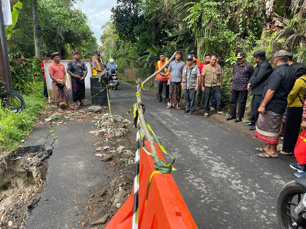 Wakil Gubernur Bali Prof. Tjok Oka Sukawati didampingi Kepala Dinas PUPR Provinsi Bali Nusakti Yasa Weda, Kalaksa BPBD Provinsi Bali Made Rentin, Kepala Dinas PU Kabupaten Gianyar I Dewa Gede Putra Hartawan, Kalaksa BPBD Kabupaten Gianyar Ida Bagus Putu Suamba meninjau jalan penghubung Ubud dan Tegalalang yang longsor sejak 7 Juli 2023.