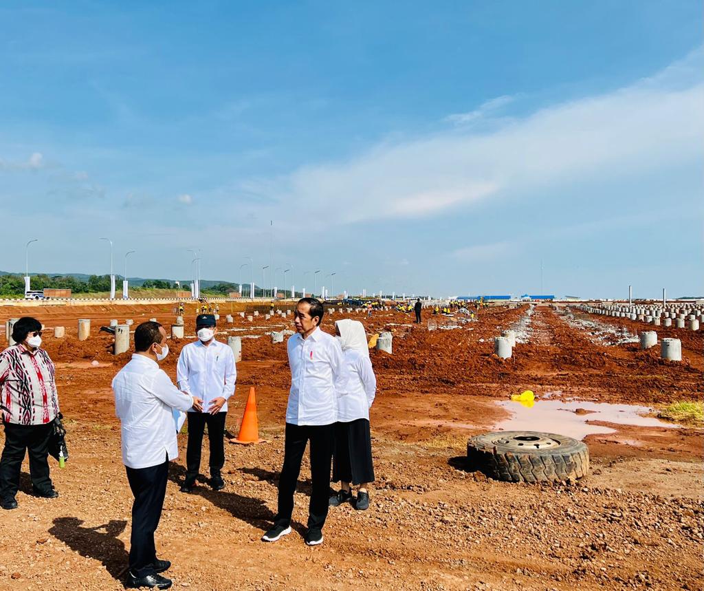 Presiden Joko Widodo beserta Ibu Iriana Joko Widodo meninjau langsung Kawasan Industri Terpadu Batang (KITB) di Kabupaten Batang, dalam kunjungan kerjanya ke Provinsi Jawa Tengah, pada Rabu, 8 Juni 2022. Presiden Jokowi melihat progres konstruksi kawasan tersebut yang sudah dimulai.