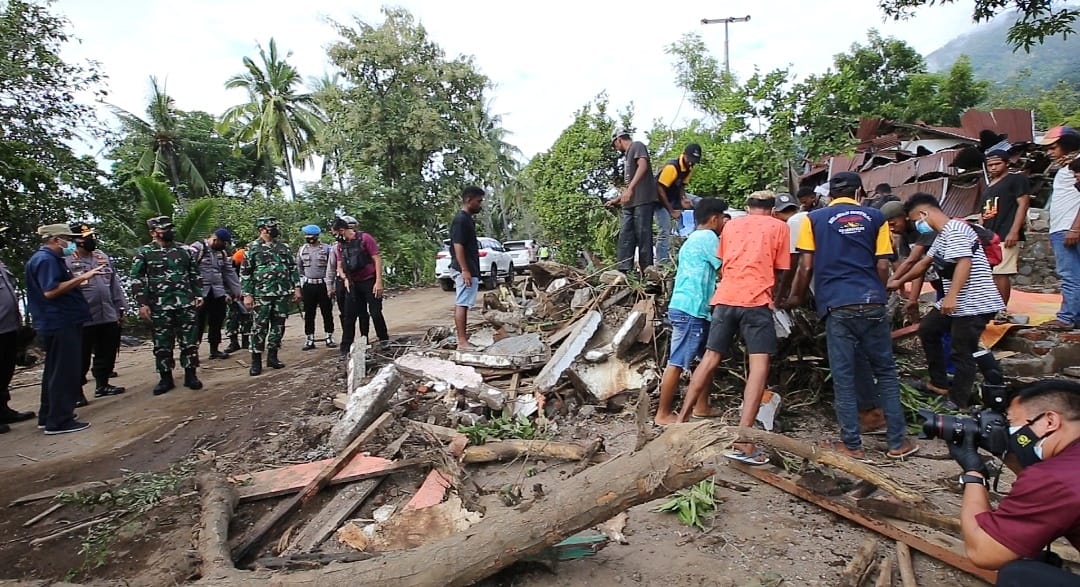 Bersama rombongan, keduanya meninjau Desa Amakaka yang berlokasi sekira 10 Kilometer (Km) di bawa kaki Gunung Ile Lewotolok. Mereka melihat langusng kondisi rumah masyarakat yang hancur akibat bencana alam.