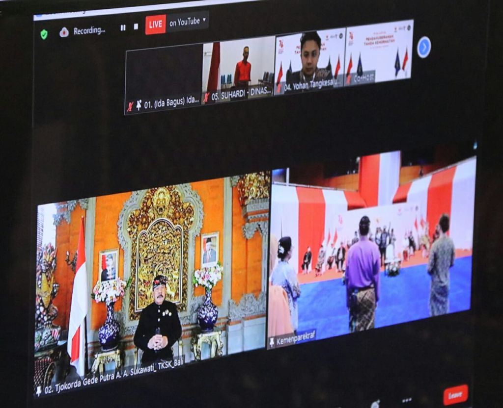 Acara penyerahan tanda penghargaan tersebut dilakukan secara hybrid (langsung dan daring) oleh Kementerian Pariwisata, yang diikuti oleh Tjokorda Gede Putra Artha Astawa Sukawati di Puri Ubud-Gianyar, pada Selasa (17/8).