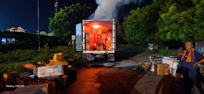 Sebuah truk box L-9905-UC mengalami kebakaran di areal Pelabuhan Gilimanuk, Kelurahan Gilimanuk, Kecamatan Melaya, Kabupaten Jembrana, Bali.