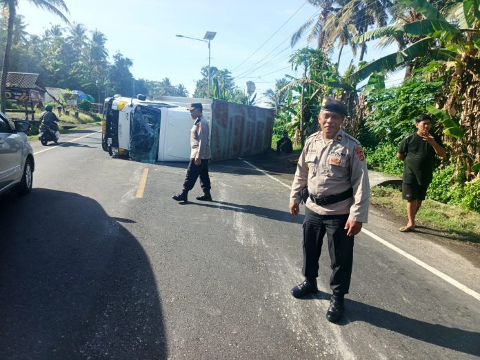Kapolsek Pekutatan Kompol I Putu Suarmadi, Sabtu (11/4/2026), membenarkan adanya lakalantas tunggal tersebut. “Untuk sementara lalu lintas kami berlakukan buka tutup sambil menunggu kendaraan derek,” ujar Kompol Suarmadi. (Komang Tole)