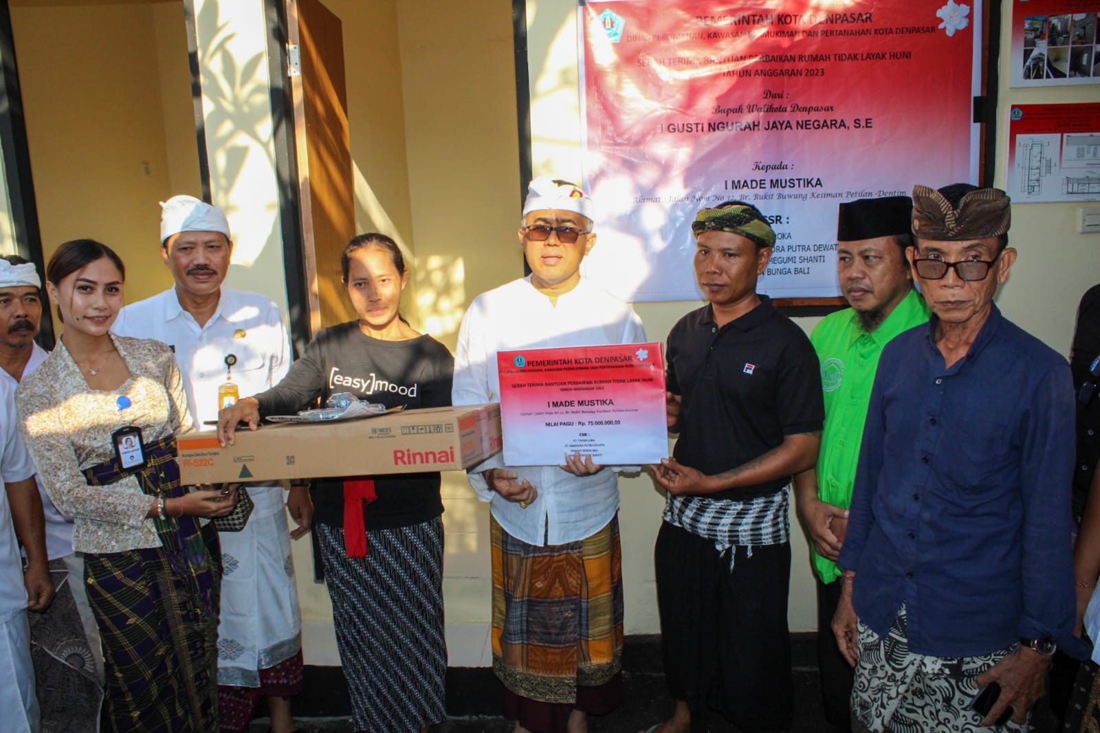 Walikota Denpasar, I Gusti Ngurah Jaya Negara menyerahkan  secara langsung dua unit Bantuan Perbaikan Rumah Tidak Layak Huni (RTLH) atau yang dikenal dengan Bedah Rumah beserta sarana perlengkapannya di Wilayah Banjar Bukit Buwung, Desa Kesiman Petilan, Jumat (19/5). Adapun dua unit bantuan Rumah Layak Huni tersebut diserahkan kepada Penerima Bantuan atas nama I Wayan Rasmika dan I Made Mustika. Hal ini merupakan wujud nyata komitmen Pemkot Denpasar dalam membantu masyarakat memenuhi kebutuhan rumah layak huni, meski dalam situasi pasca pandemi Covid-19.