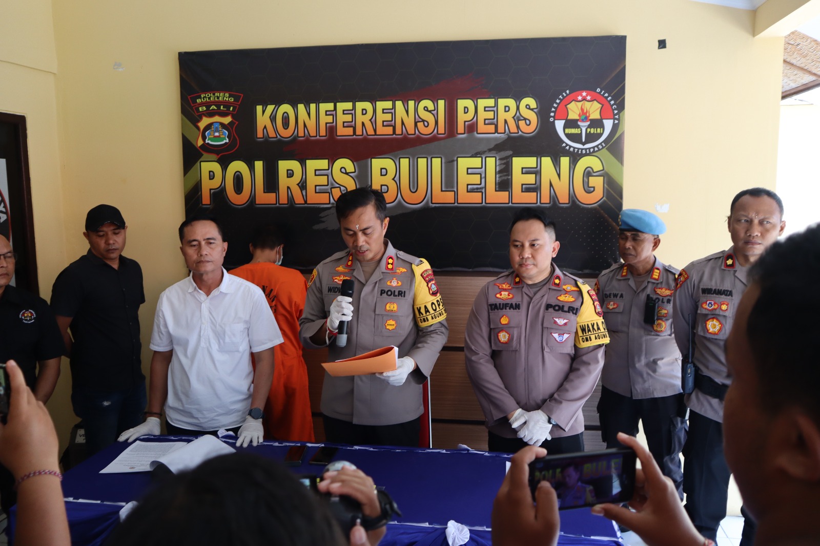 Kapolres Buleleng AKBP Ida Bagus Widwan Sutadi, S.I.K.,M.H., mengapresiasi kinerja Satuan Reserse Narkotika (Sat Restik) dibawah pimpinan AKP Putu Subita Bawa, S.Sos, M.H., team opsnal telah mengungkap pelaku yang diduga melakukan peredaran Narkoba didaerah Buleleng. Dimana pelaku yang mengaku beralamat di lingkungan bakung, kelurahan Sukasada, Buleleng pada Kamis, (28/12/2023) digerebeg dirumahnya dan ditemukan beberapa paket narkoba jenis sabu-sabu. Hal ini disampaikan saat Kapolres didampingi Waka Polres Buleleng, Kasat Narkoba dan Kasi Humas Polres Buleleng memimpin press release terhadap pengungkapan tersebut, Sabtu, (30/12/2023) di Mapolres Buleleng.