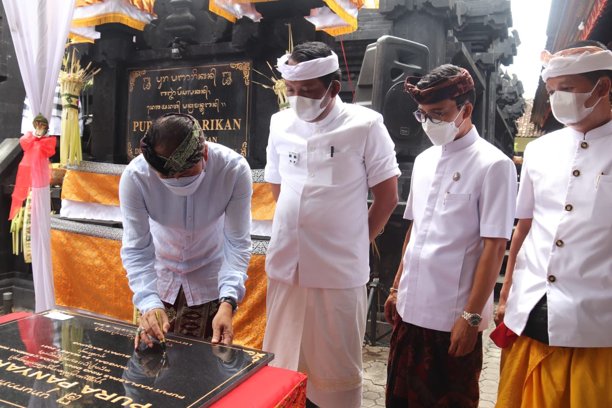 Wakil Bupati Badung I Ketut Suiasa menghadiri Upacara Mecaru Melaspas, Mendem Pedagingan, Mendak Nuntun lan Pujawali di Pura Penyarikan Br. Pesalakan Desa Adat Tuban Kuta, Rabu (24/3). Upacara yang dipuput Ida Pedanda Gede Menara Putra Kekeran ini juga dihadiri Anggota DRPD Badung AA. Anom Gumanti, Camat Kuta I Nyoman Rudiarta, Bendesa Adat Tuban I Wayan Mendra, serta masyarakat setempat.