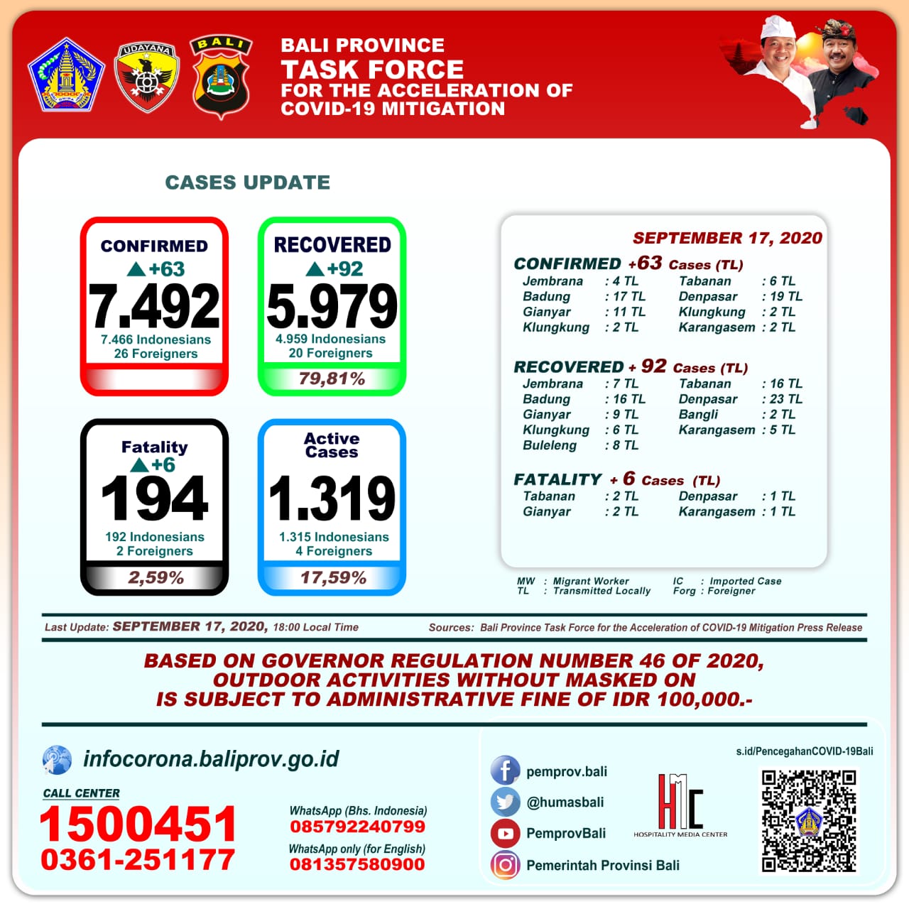 Perkembangan Pandemi Covid-19 di Provinsi Bali per hari ini mencatat pertambahan kasus :