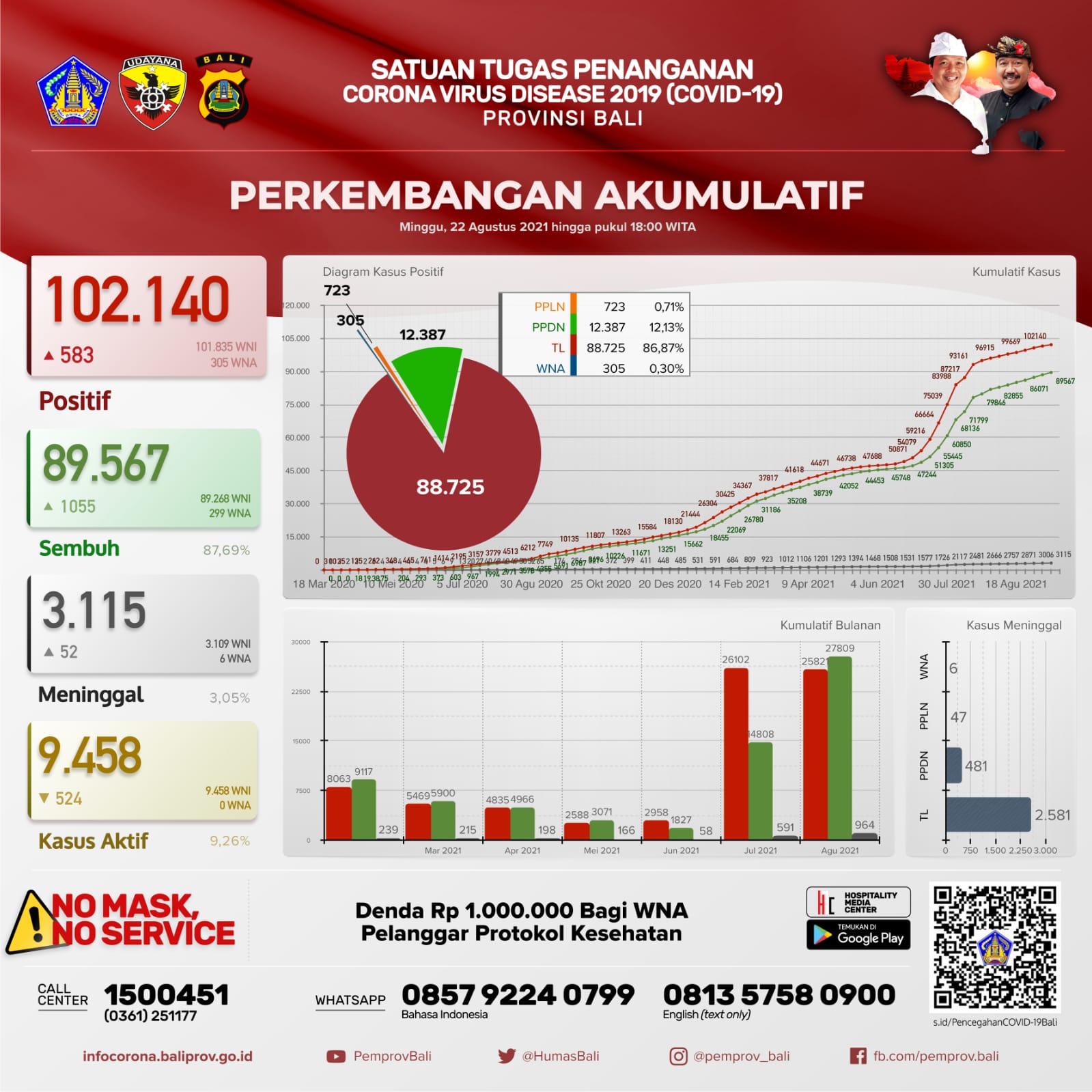 TERKONFIRMASI  102.140 orang, SEMBUH 89.567 orang (87,69%), dan  Meninggal Dunia 3.115 orang (3.05%).