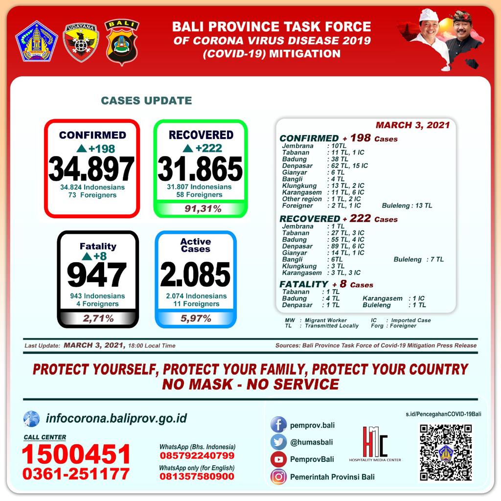 TERKONFIRMASI sebanyak 198 orang (171 orang melalui Transmisi Lokal dan 27 PPDN)