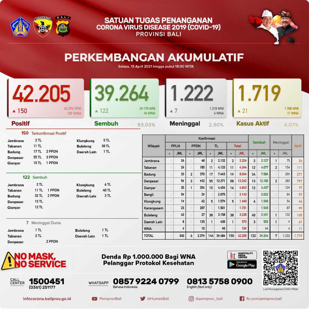 SEMBUH 39.264 orang (93,03%), dan Meninggal Dunia 1.222 orang (2,90%).