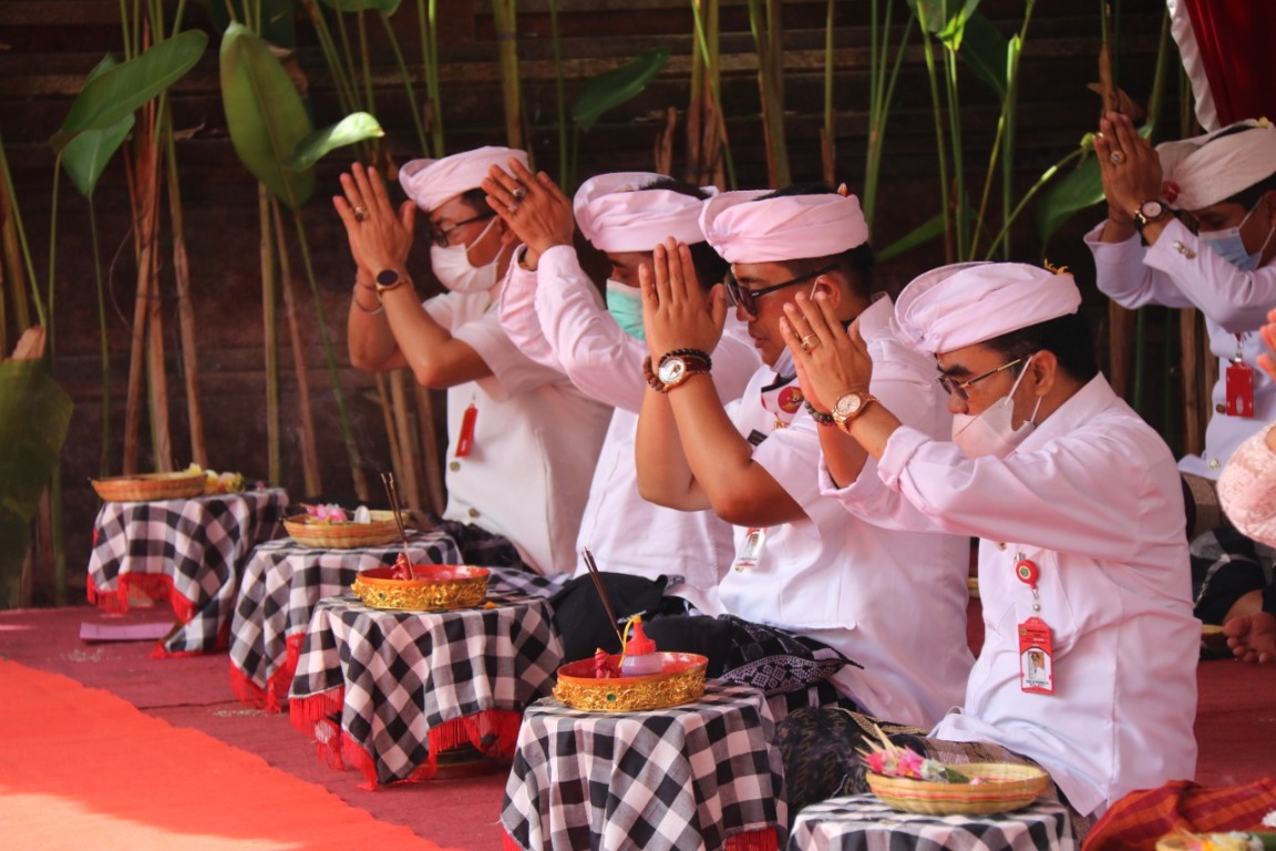 Hal itu disampaikannya usai melaksanakan persembahyangan serangkaian Upacara Pemelaspasan di RJ Bupati Tabanan yang bertepatan dengan Purnamaning Sasih Kasa, rahina Wraspati Umanis Uku Matal, Kamis, (24/6). Turut hadir saat itu, Wakil Bupati Tabanan I Made Wirawan, SE, Sekda, para Asisten dan OPD terkait serta nampak juga beberapa anggota DPRD Kabupaten Tabanan.