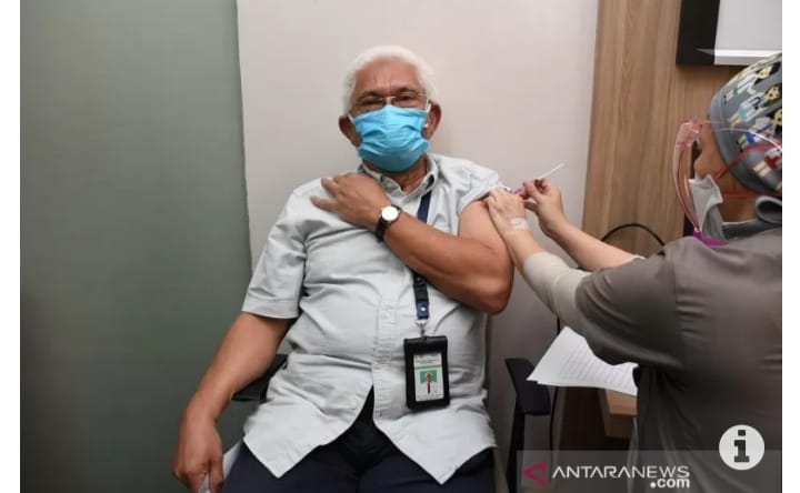 Pada tahap kegiatan itu, pelaksana kegiatan vaksinasi menyuntikkan dosis ketiga vaksin kepada Guru Besar senior dari Fakultas Kedokteran Universitas Indonesia. Diharapkan hal itu dapat diikuti oleh tenaga kesehatan lainnya tanpa ragu.