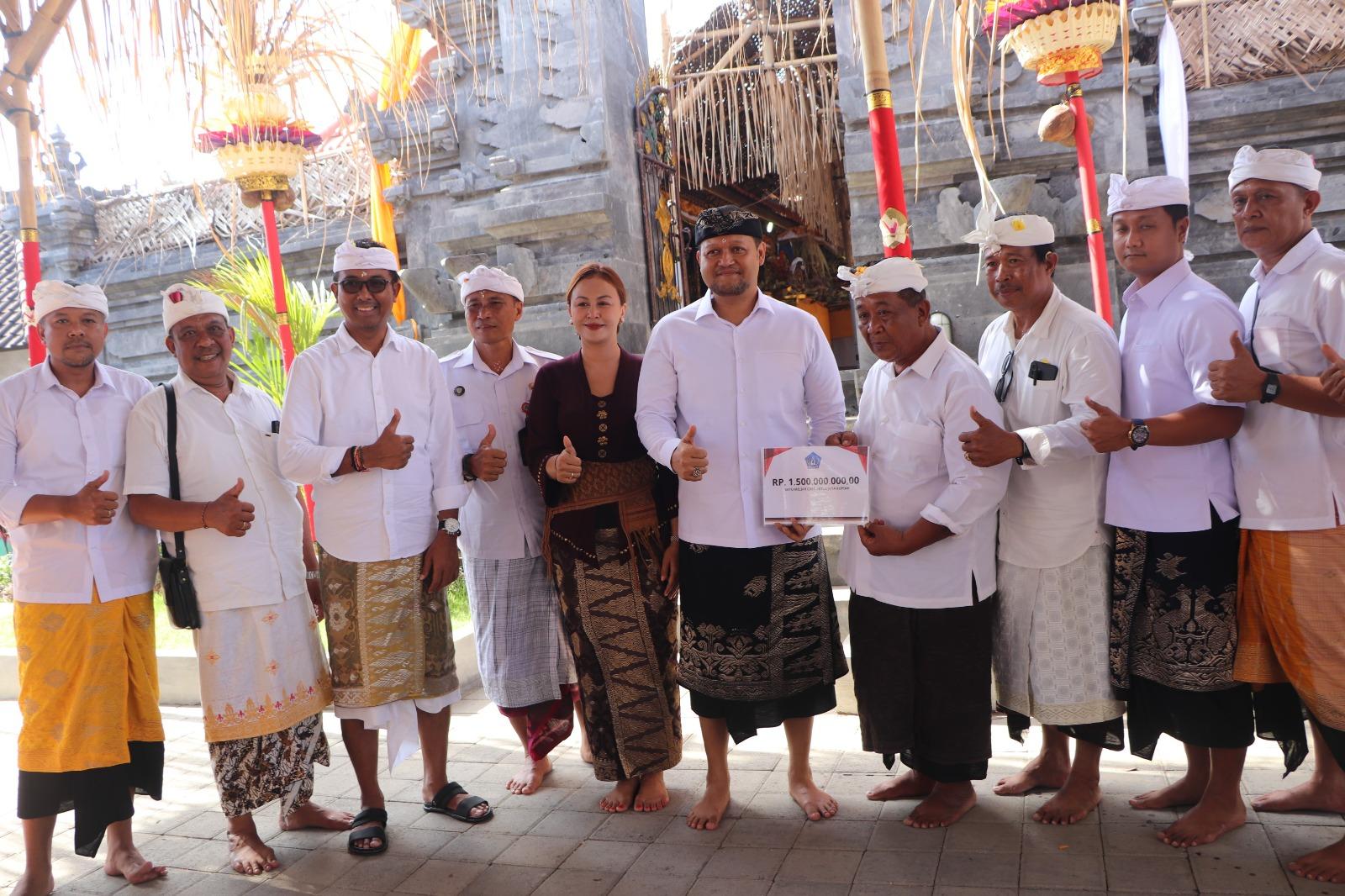 Sebagai bentuk komitmen dan dukungan Pemkab Badung, Wabup Bagus Alit Sucipta menyerahkan bantuan dana secara simbolis sebesar Rp 1,5 miliar serta mepunia sebesar Rp 15 juta yang diterima Panitia Karya l Wayan Mushadi.