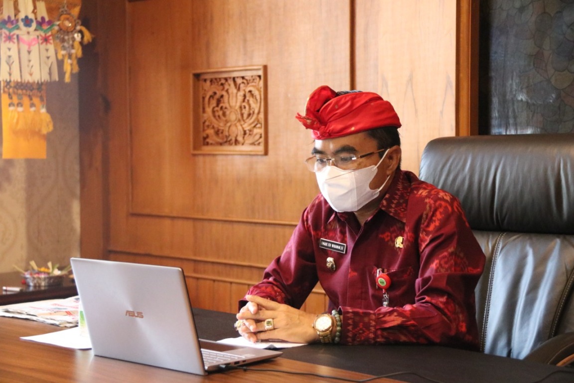 Wakil Bupati Tabanan I Made Edi Wirawan,SE, mengikuti Webinar verifikasi lapangan Pengarus Utamaan Gender (PUG), yang diselenggarakan oleh Kemeterian Pemberdayaan Perempuan dan Perlindungan Anak Republik Indonesia, secara virtual, Kamis (18/3).