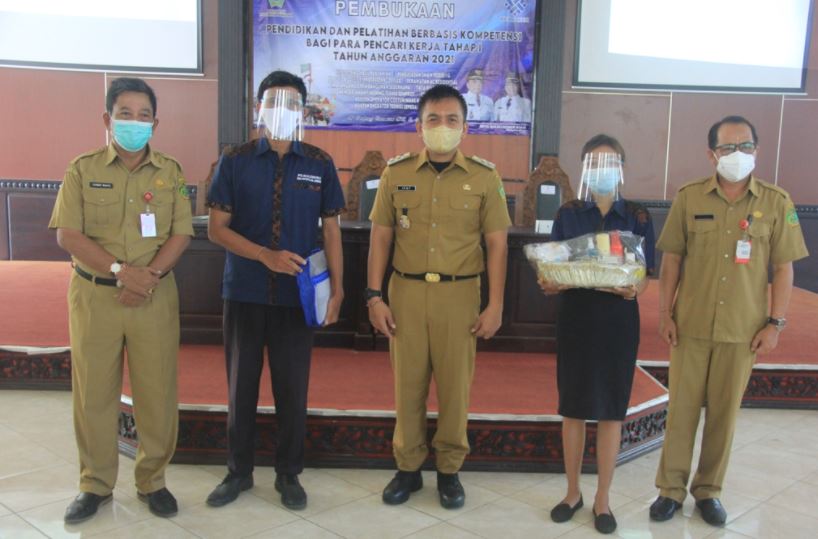Sebagai salah satu upaya untuk menumbuhkan kemampuan kerja serta menekan angka pengangguran di Kabupaten Jembrana, Wakil Bupati Jembrana I Gede Ngurah Patriana Krisna membuka Pendidikan dan Pelatihan Kerja Tahap I 2021 bagi para pencari kerja, Senin (12/4/2021) di Lantai II Gedung Kesenian Bung Karno. Hadir dalam kesempatan tersebut Asisten Pembangunandan Kesejahteraan Rakyat I Gusti Ngurah Sumber Wijaya, Kepala Dinas PMPTSPTK Jembrana I Komang Suparta serta seluruh peserta pelatihan kerja.