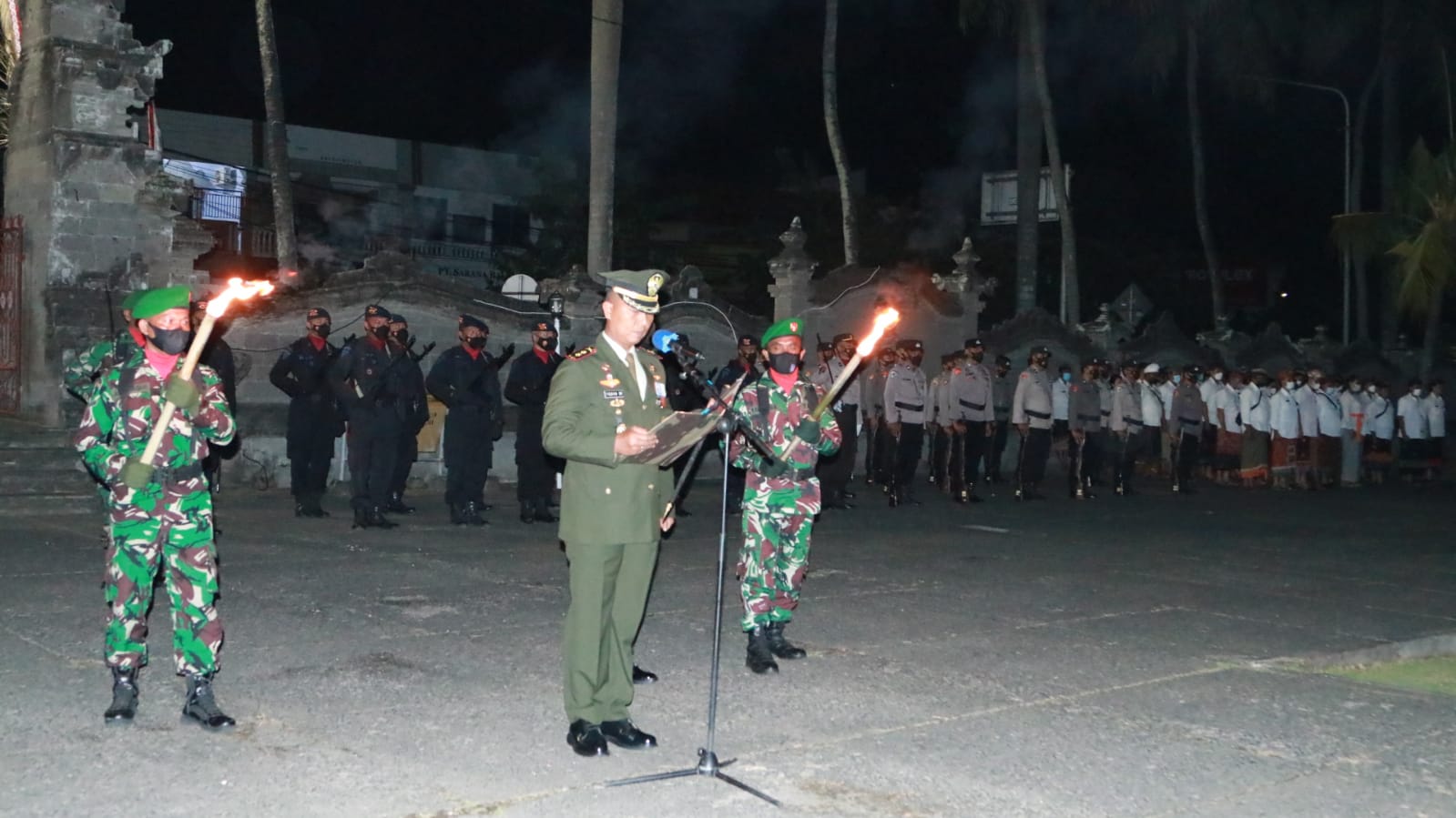 Apel Kehormatan dan Renungan Suci ini dimulai tepat Pukul 00.00 Wita diikuti oleh Kesatuan TNI, POLRI, Para kepala OPD di lingkungan Pemerintah Kabupaten Jembrana, serta peserta lainnya. Apel kehormatan ini dimulai dengan penghormatan arwah para pahlawan dilanjutkan dengan pembacaan Apel Kehormatan dan Renungan Suci oleh Damdim 1617 Jembrana Letkol Inf. Teguh Dwi Raharja selaku Inspektur Upacara.