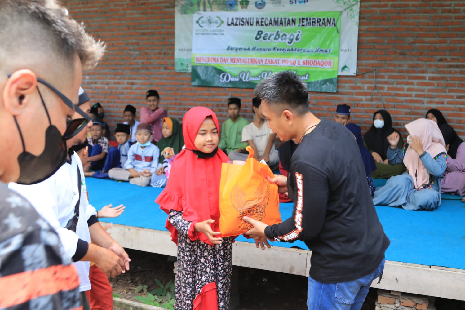 Jelang Hari Suci Idul Fitri, Wakil Bupati Jembrana I Gede Ngurah Patriana Krisna bersama Club Moge Silver Head Harley Davidson Bali (SHHD) dan Garage Custom Club Jembrana (GCC) menyalurkan bingkisan sembako kepada 100 Anak Yatim Piatu bertempat di Ambenan Ijogading Loloan Timur dan Kantor Desa Pengambengan, Minggu (1/5). Aksi sosial ini kolaborasi Pemkab Jembrana bersama Klub Motor Silver Head Harley Davidson Bali .