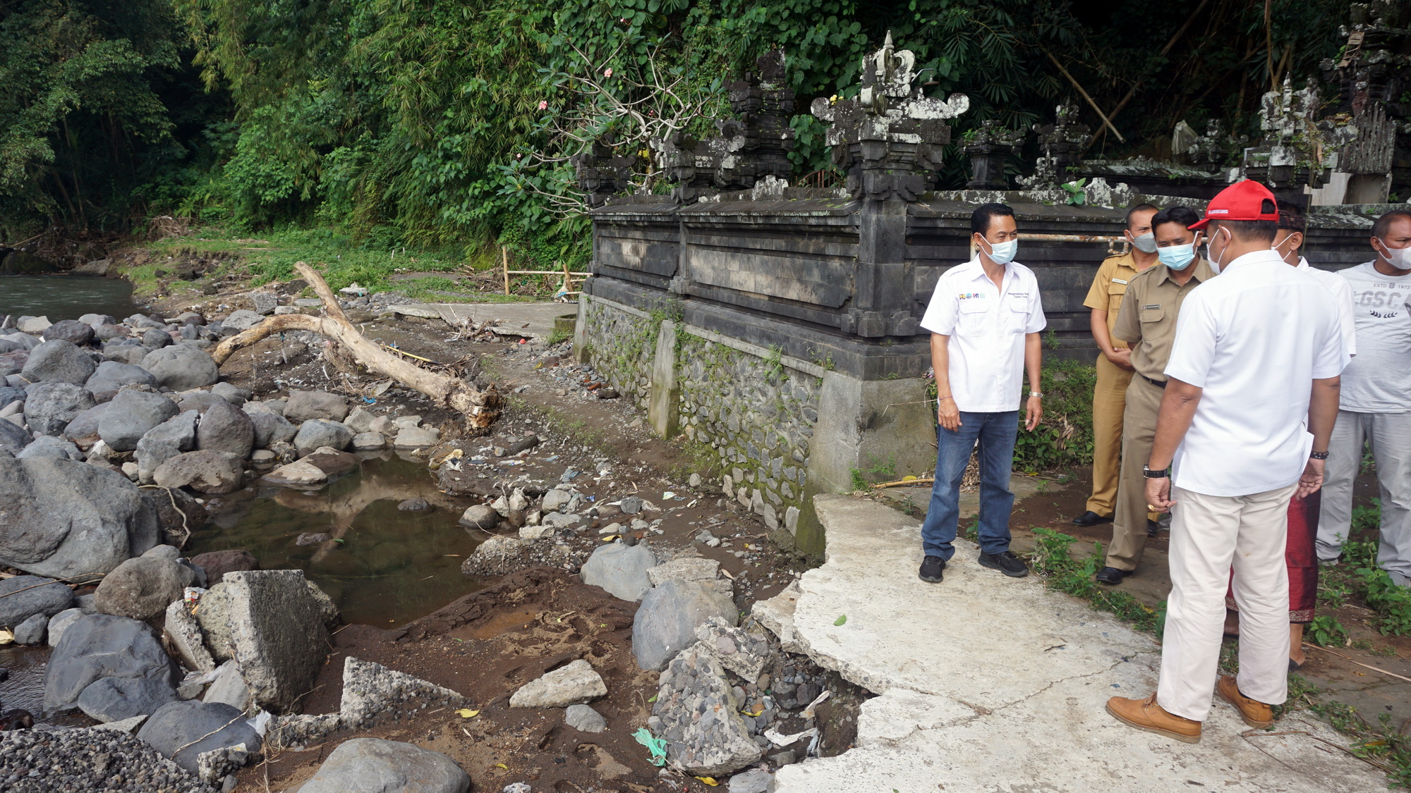 Terkait adanya laporan masyarakat terkait ada infrastruktur jalan di Dusun Hyang Api yang mengalami kerusakan akibat hujan lebat yang terjadi beberapa hari yang lalu di Kabupaten Klungkung. Wakil Bupati Klungkung I Made Kasta turun ke lapangan meninjau infrastruktur yang mengalami kerusakan di Dusun Hyang Api, Desa Akah pada Senin (9/8/2021).