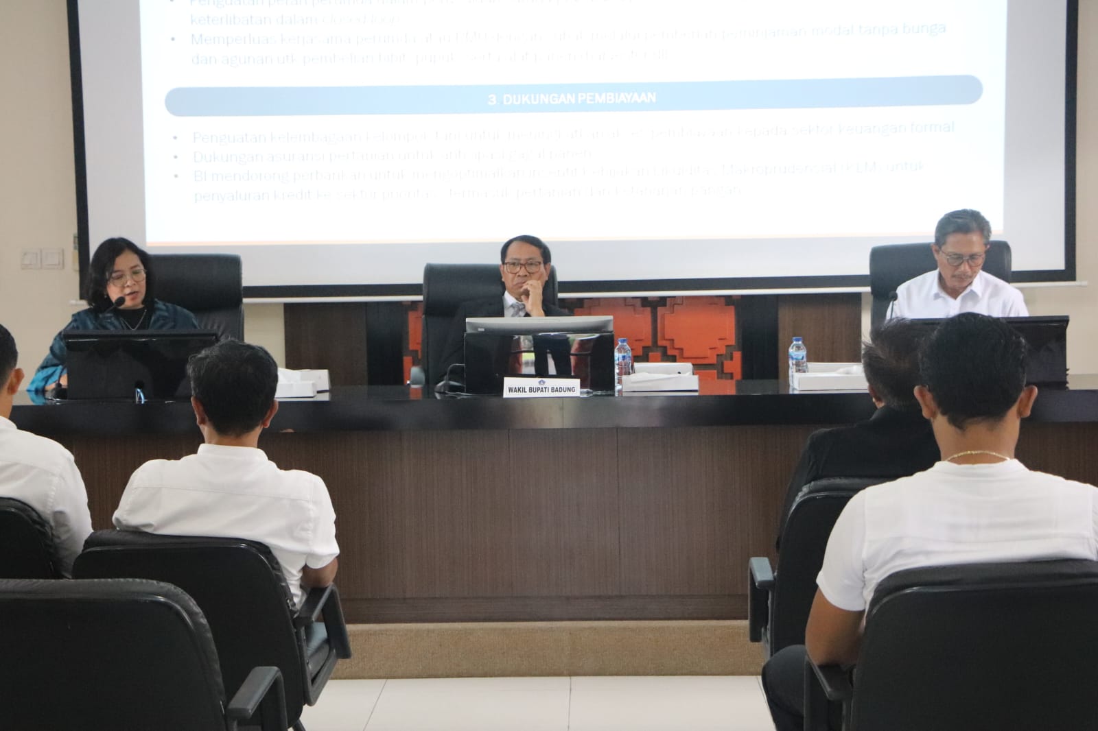 Wakil Bupati Badung I Ketut Suiasa memimpin Rapat High Level Meeting Tim Pengendalian Inflasi Daerah (HLM TPID) Kabupaten Badung, dengan topik Mewujudkan Inflasi yang Rendah dan Stabil serta Menjaga Ketersediaan Pasokan dan Kestabilan Harga Barang Menjelang Hari Raya Galungan dan Kuningan, bertempat di Ruang Rapat Rumah Jabatan Wakil Bupati, Puspem Badung, Rabu (18/9). Turut hadir Asisten Perekonomian dan Pembangunan Kabupaten Badung IB. Gede Arjana, Kepala Kantor Bank Indonesia Provinsi Bali Gusti Agung Diah Utari, Kepala Bulog Divisi Regional Bali, Kepala BPS Kabupaten Badung, Kepala OPD terkait di Lingkup Pemkab Badung, Direktur Operasional Perumda Pasar dan Pangan Mangu Giri Sedana serta Kepala Bidang Bulog Sempidi.