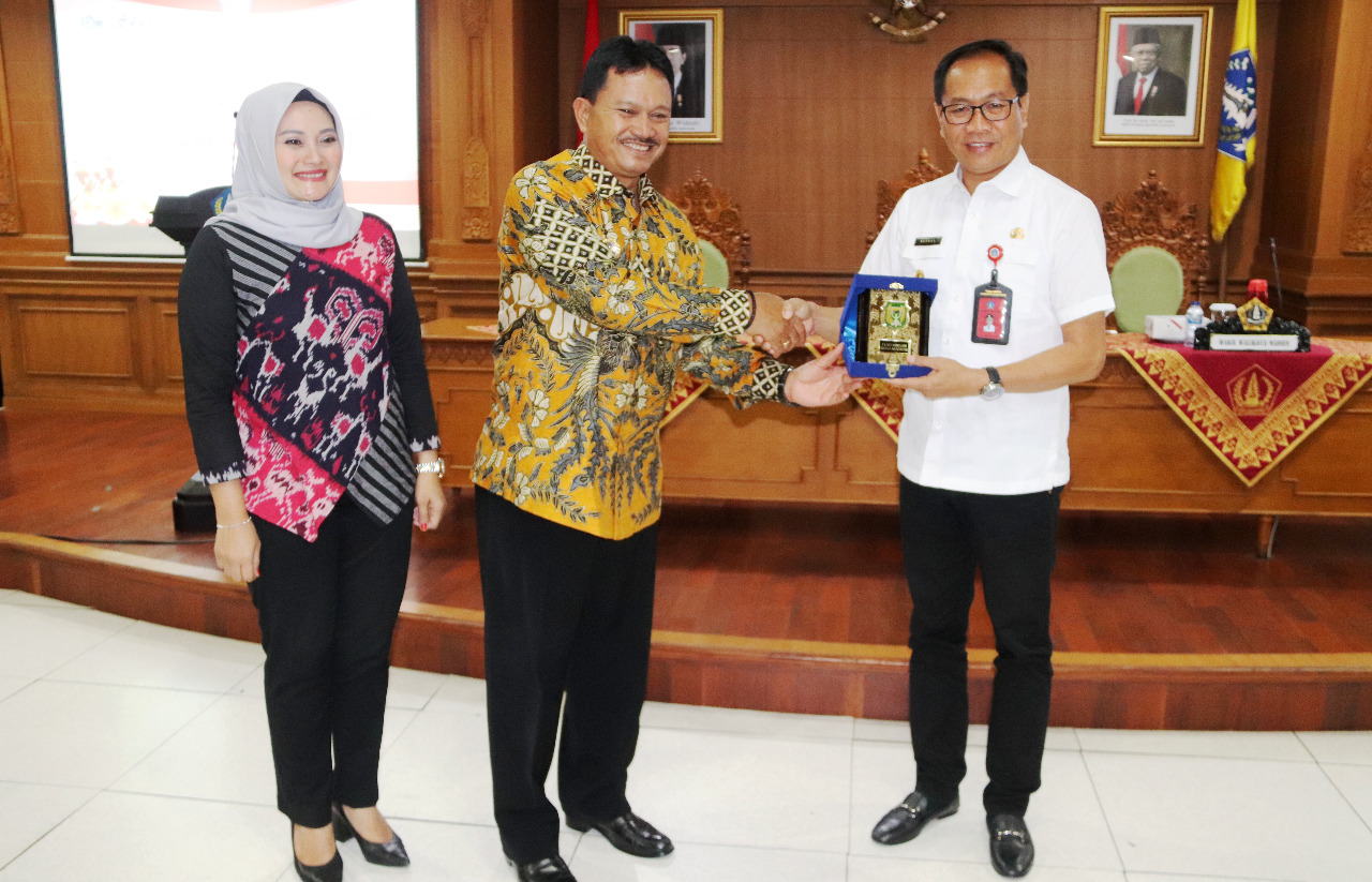 Wakil Bupati Badung I Ketut Suiasa menerima kunjungan Pemerintah Kota Madiun Provinsi Jawa Timur di Puspem Badung, Rabu (30/10). Kunjungan ini menindaklanjuti kunjungan pertama mengenai program pengadaan laptop gratis untuk siswa SD dan SMP. Rombongan yang dipimpin langsung Walikota Madiun Drs. H.Maidi, SH. Dan Wakil Walikota Madiun Inda Raya Ayu Mikosaputri, bersama Dekan Universitas Merdeka Madiun, Drs. Agus Wiyaka dan Kadis Pendidikan Kota Madiun Drs. Heri Wasana.